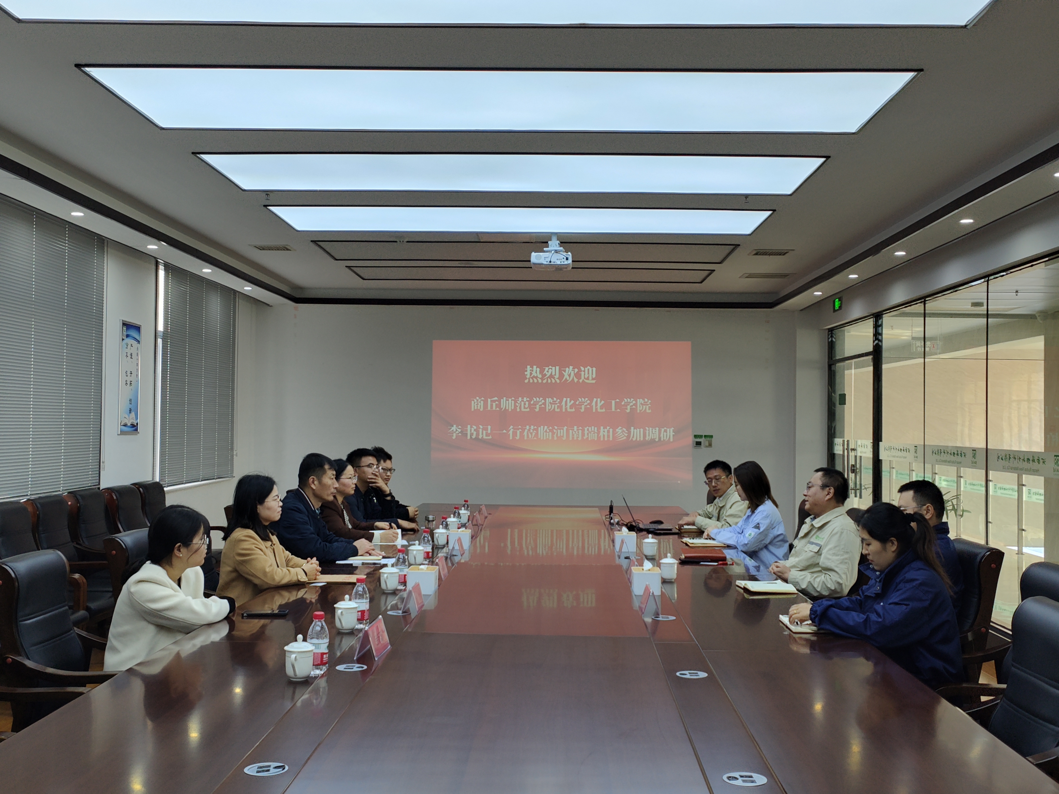 活动当天,化学化工学院党委书记李海涛带领师生代表来到了河南瑞柏新材料有限公司,受到了公司徐西东经理及各位领导的热情欢迎。座谈会上,双方领导就各自单位的情况进行了介绍,并在学生实习实训、毕业生就业、科研项目合作等方面展开深入交流。