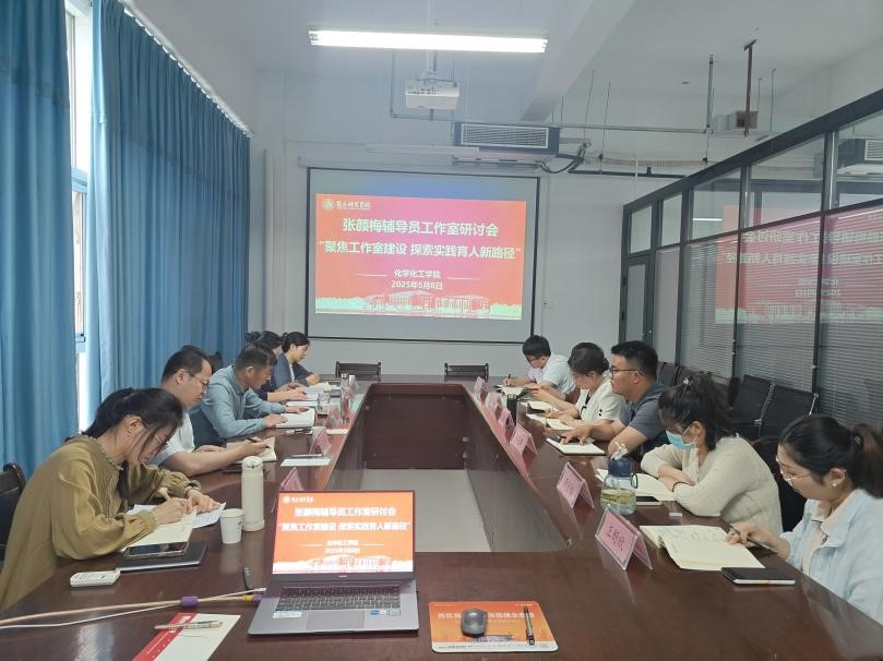为深入推进张颜梅辅导员工作室建设,凝聚育人合力,提升实践育人实效,2025年5月9日,化学化工学院张颜梅辅导员工作室研讨会在工科实训大楼308会议室顺利召开。省级辅导员工作室代表外语学院孙颖、校级辅导员工作室代表经济管理学院李利萍应邀出席,化学化工学院党委书记李海涛、副院长王涛、CHO科普社团指导教师陈淑敏及工作室全体成员参会。会议由工作室负责人、化学化工学院党委副书记张颜梅主持。
