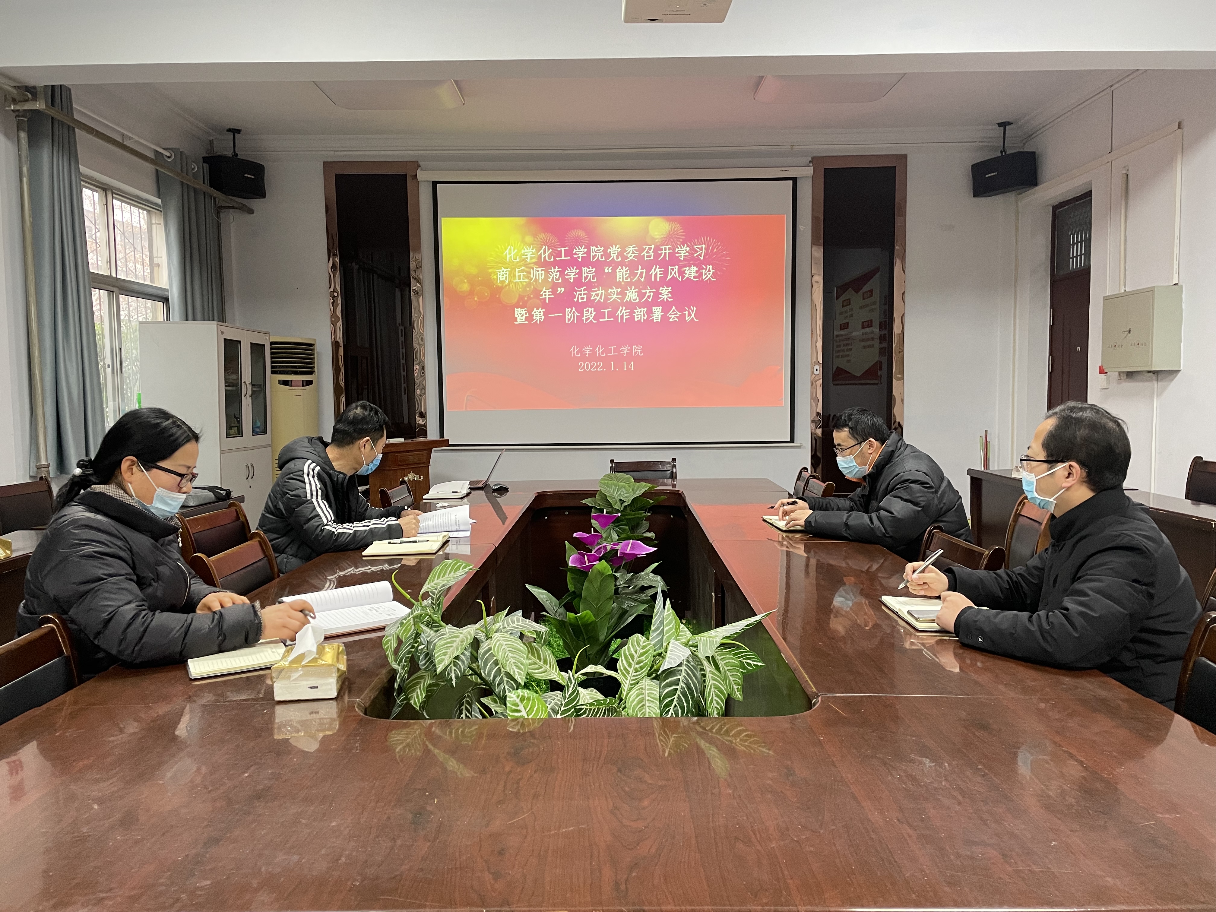 根据省委办公厅及高校工委关于“能力作风建设年”活动实施方案的通知,结合《永利23411集团“能力作风建设年”活动实施方案》要求,1月14日,化学化工学院党委在学院会议室召开学习永利23411集团“能力作风建设年”活动实施方案暨第一阶段工作安排部署会议,领导班子参加,会议由院党委书记李海涛主持。