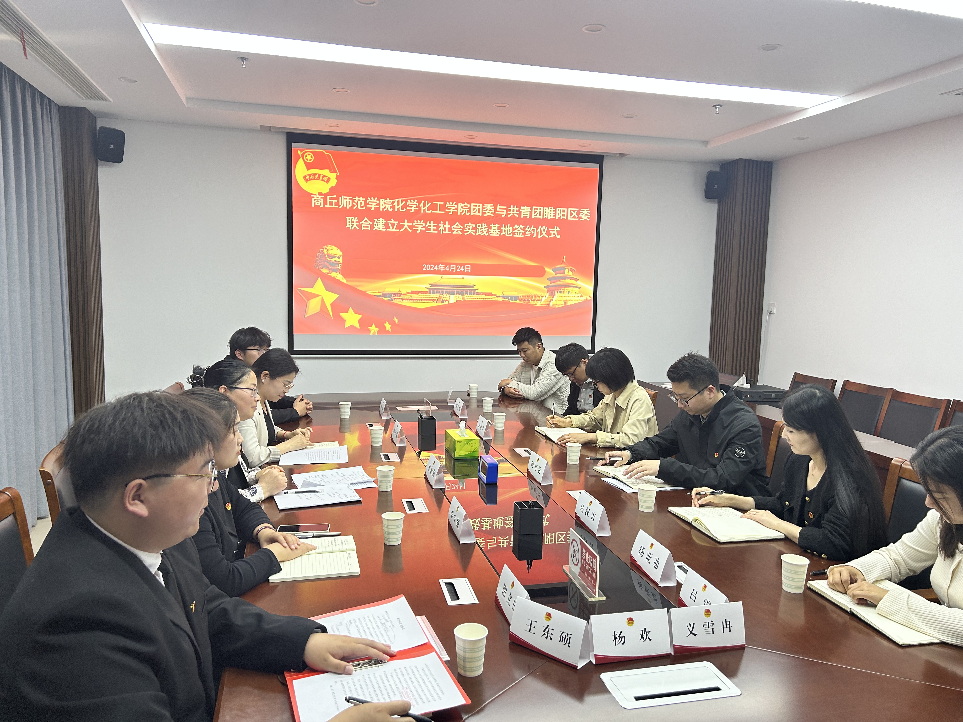 为深入学习习近平新时代中国特色社会主义思想和贯彻党的二十大精神,组织高校大学生走进基层广泛开展社会实践,提高大学生的社会能力,同时推动“大学生社区实践计划”制度化、常态化,永利23411集团化学化工学院团委联合共青团睢阳区委建立大学生社会实践基地。近日,签约仪式在睢阳区团委举行。永利23411集团化学化工学院党委副书记张颜梅、院团委书记郭家瑞一行8人,共青团睢阳区委书记何虹以及团区委全体工作人员参加签约仪式。