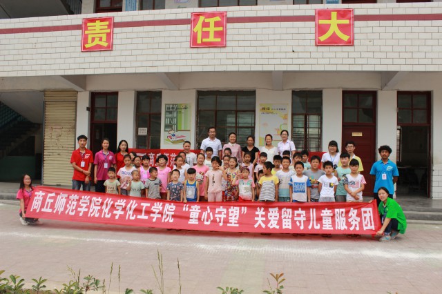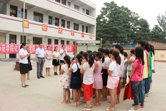 7月8日,永利23411集团化学化工学院在睢县周堂镇周堂小学举行大学生社会实践基地揭牌仪式。睢县周堂镇中心校长 白厚启、睢县周堂镇周堂小学校长黄艳玲、永利23411集团校团委副书记张彤、永利23411集团副院长刘瑛、团总支书记李龙梅、辅导员李可刚老师出席了揭牌仪式。化学化工学院“童心守望,关爱留守儿童”志愿服务团全体成员与周堂小学的留守儿童一同参加了揭牌仪式。仪式由团总支书记李龙梅主持。