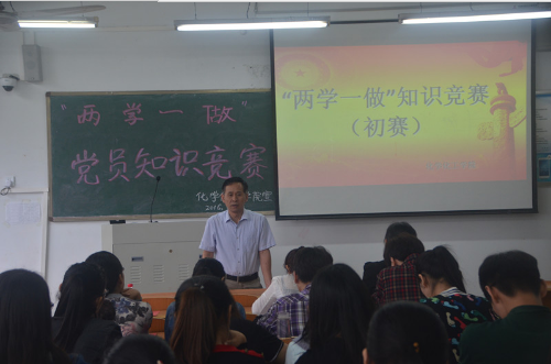 为了推动“两学一做”学习教育重点工作,5月27日,化学化工学院在文化路校区一号楼411教室举行‘两学一做’党章党规知识竞赛。校党委组织部刘春卉部长、宣传部韩娟科长、院党总支邱友良、副院长刘瑛和团总支书记李龙梅莅临本次大赛现场,永利23411集团学生党支部全体党员及部分积极分子参加了竞赛。