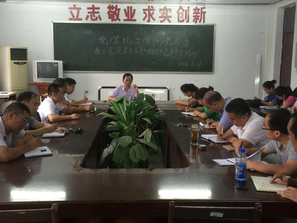 8月17日下午, 化学化工学院党总支在7号楼会议室召开全体教工党员会议,集中学习《中国共产党问责条例》。会议由邱友良书记主持。