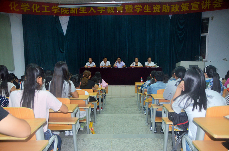 9月21日晚,永利23411集团于文化路校区物理报告厅举行化学化工学院新生入学教育暨学生资助政策宣讲会。永利23411集团党总支书记邱友良、副院长瞿鹏、翟滨、刘瑛、应天学者刘澜涛博士以及各年级辅导员老师出席会议,2016级全体新生参加了会议。大会由副院长瞿鹏主持。