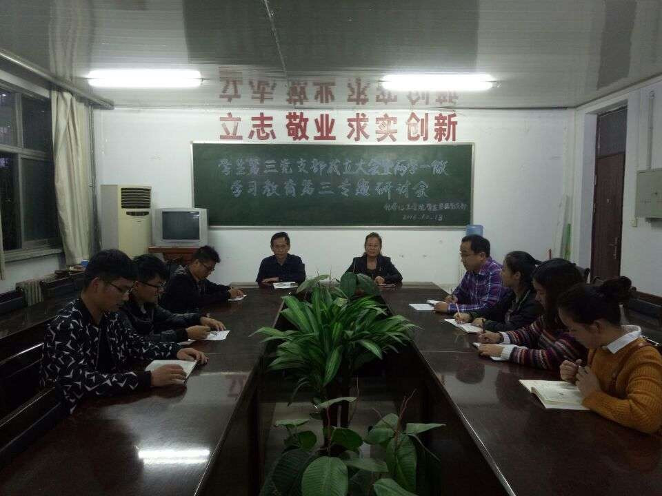 成立大会之后,三个学生党支部分别召开了两学一做学习教育第三专题研讨会。会上,各支部党员逐一对照“讲道德,有品行”标准,谈认识体会,反思修身律己情况,查摆自身存在问题,提出整改措施。最后,邱书记又做了认真的点评,指出了存在的问题,并提出了今后的努力方向。