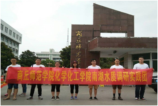 2017年7月4日早上七点,南湖水质调研团全体成员在永利23411集团文化路校区北门处集合完成,统一乘坐56路公交车前往商丘南湖。7:40团队穿过了整个商丘古城,从南城门出来,到达了商丘南湖南侧湖边。