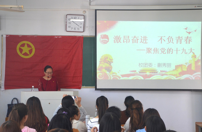 4月19日上午十点,化学化工学院于文化路校区1#411教室开展了“激昂奋进,不负青春——聚焦党的十九大”主题团课教育活动,主讲人为我校团委副书记蒯秀丽。17级辅导员郭家瑞老师及新能源16-1团支部全体同学参加了活动,活动由化学化工学院团总支书记李龙梅主持。