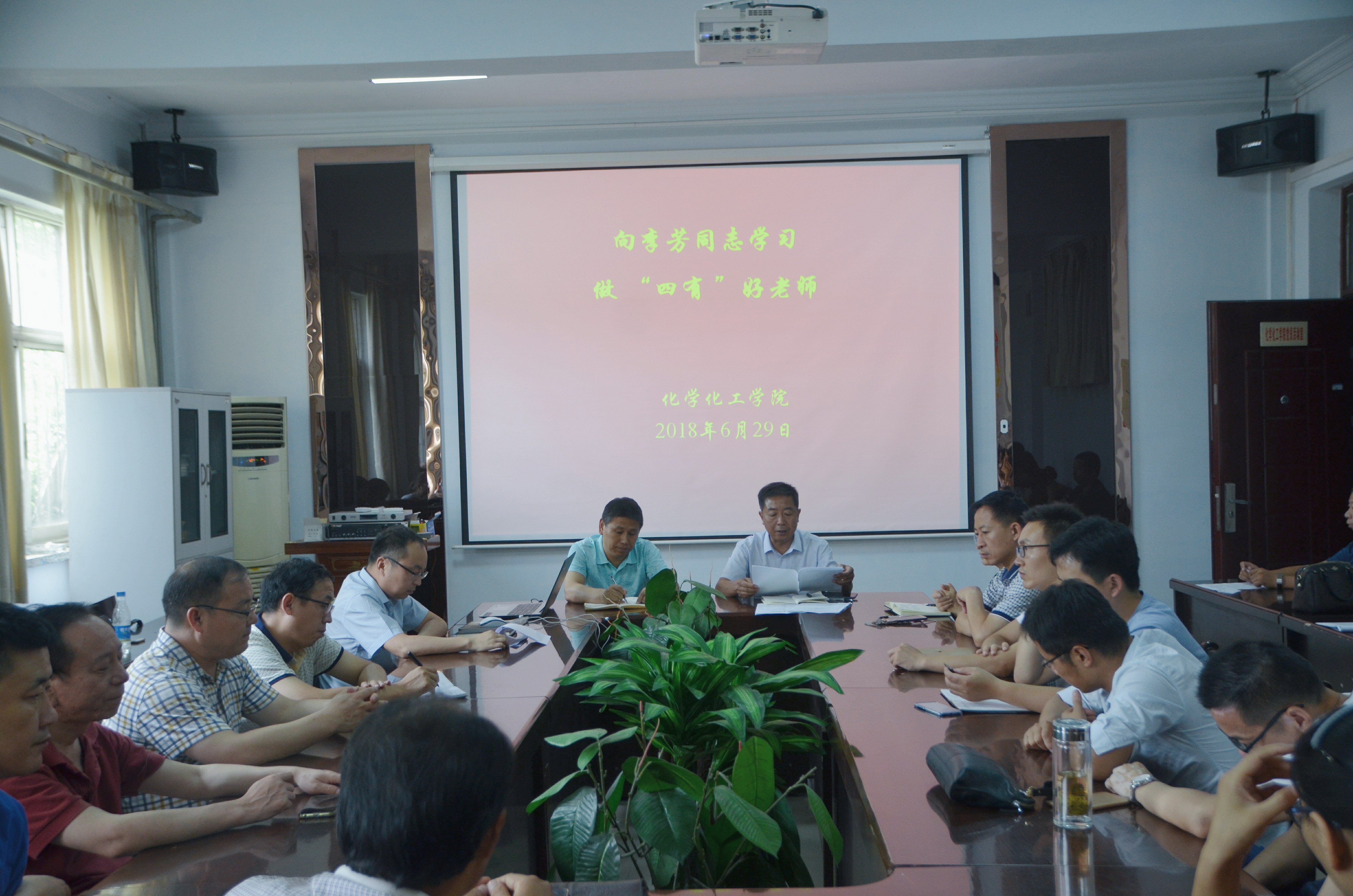 6月29日,化学化工学院在文化路校区7号楼院会议室召开向李芳同志学习做“四有”好老师的会议。学院党政领导和全体教工参加了会议,会议由党总支书记韩忠民主持。