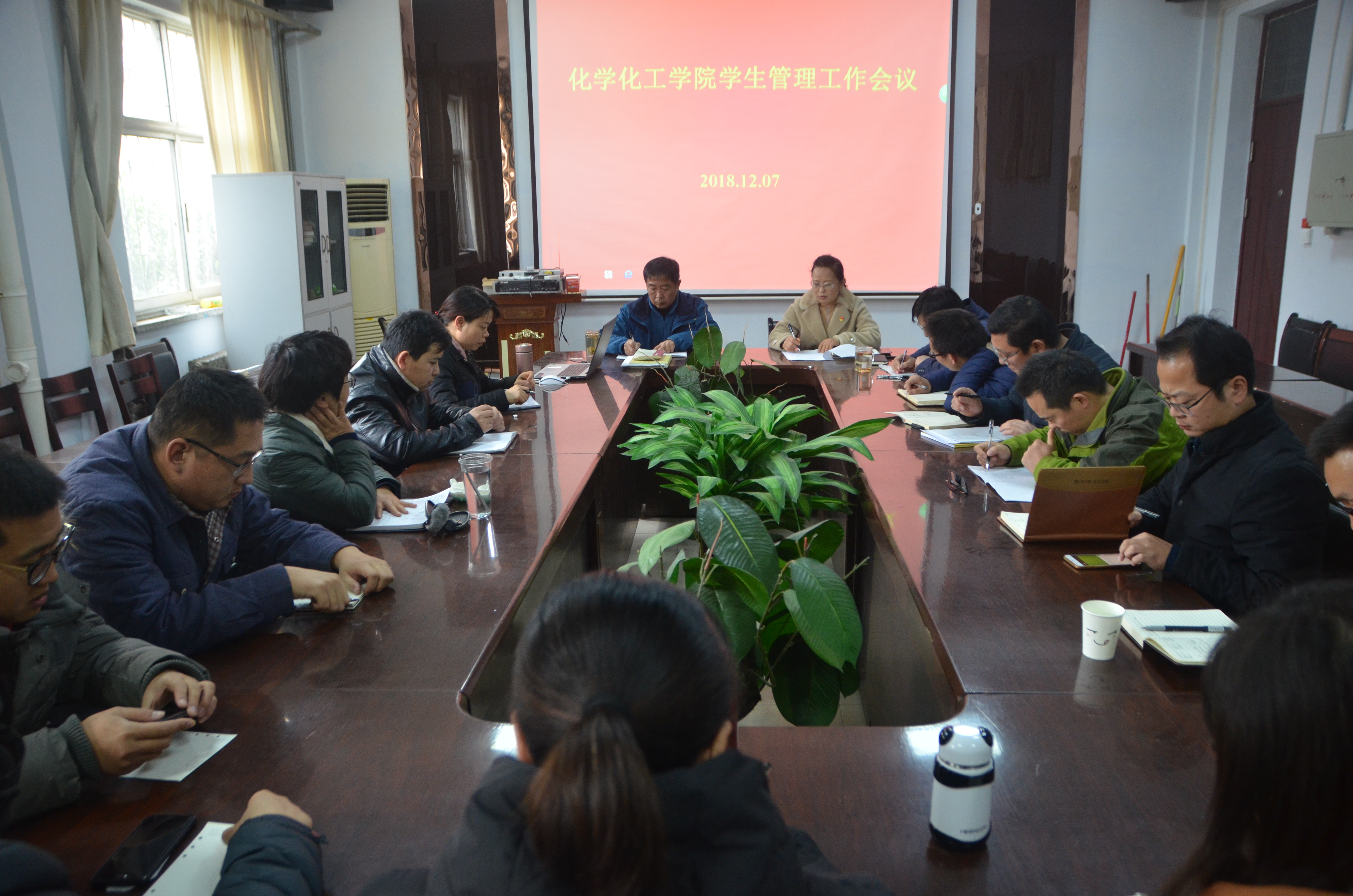 12月7日下午,化学化工学院于睢阳校区7号楼会议室召开“学生管理工作会议”。会议由党总支副书记刘瑛主持,全体辅导员、班主任参加会议。