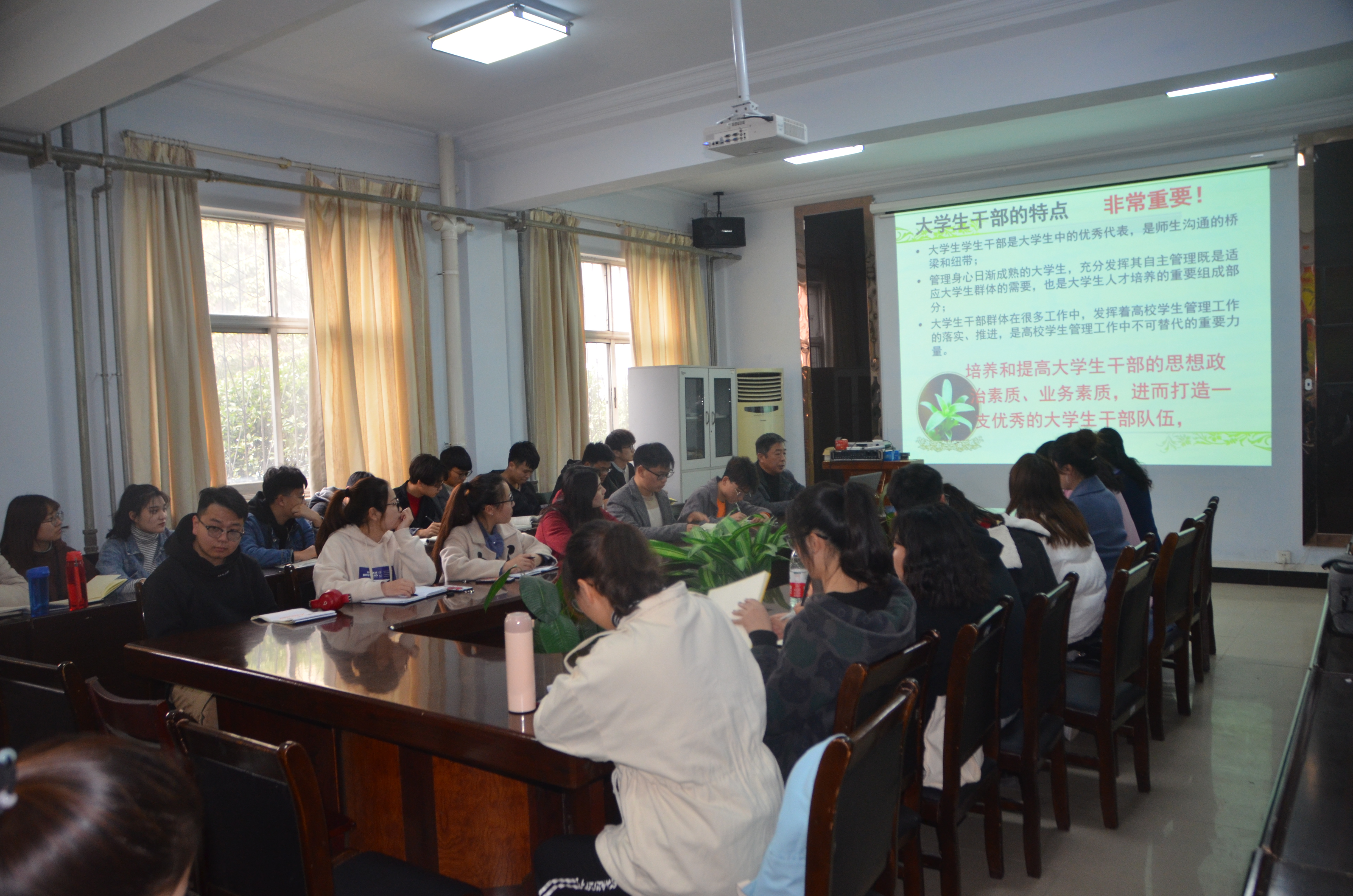 为培养和提高学生干部的思想政治素质,打造一支德、智、体、美、劳全面发展的队伍,3月10日下午,化学化工学院于睢阳校区7号楼会议室召开团学干部培训会。院党总支书记韩忠民、副书记刘瑛、团总支书记李龙梅出席,团总支、学生会全体成员参加。
