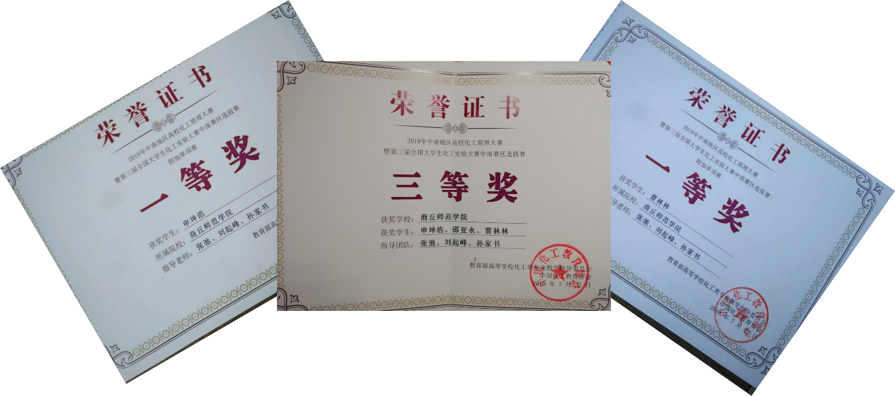 经过3天的激烈角逐,永利23411集团选送的由2016级应化材料专业学生申坤浩、曹林林和邵亚永组成的“应天归德”代表队获得三等奖,申坤浩和曹林林同学获得单人赛一等奖。同学们在赛前积极准备,竞赛中沉着冷静,以上成绩的取得,体现了我校较高的人才培养质量,也将对推动我校专业认证工作起到积极作用。