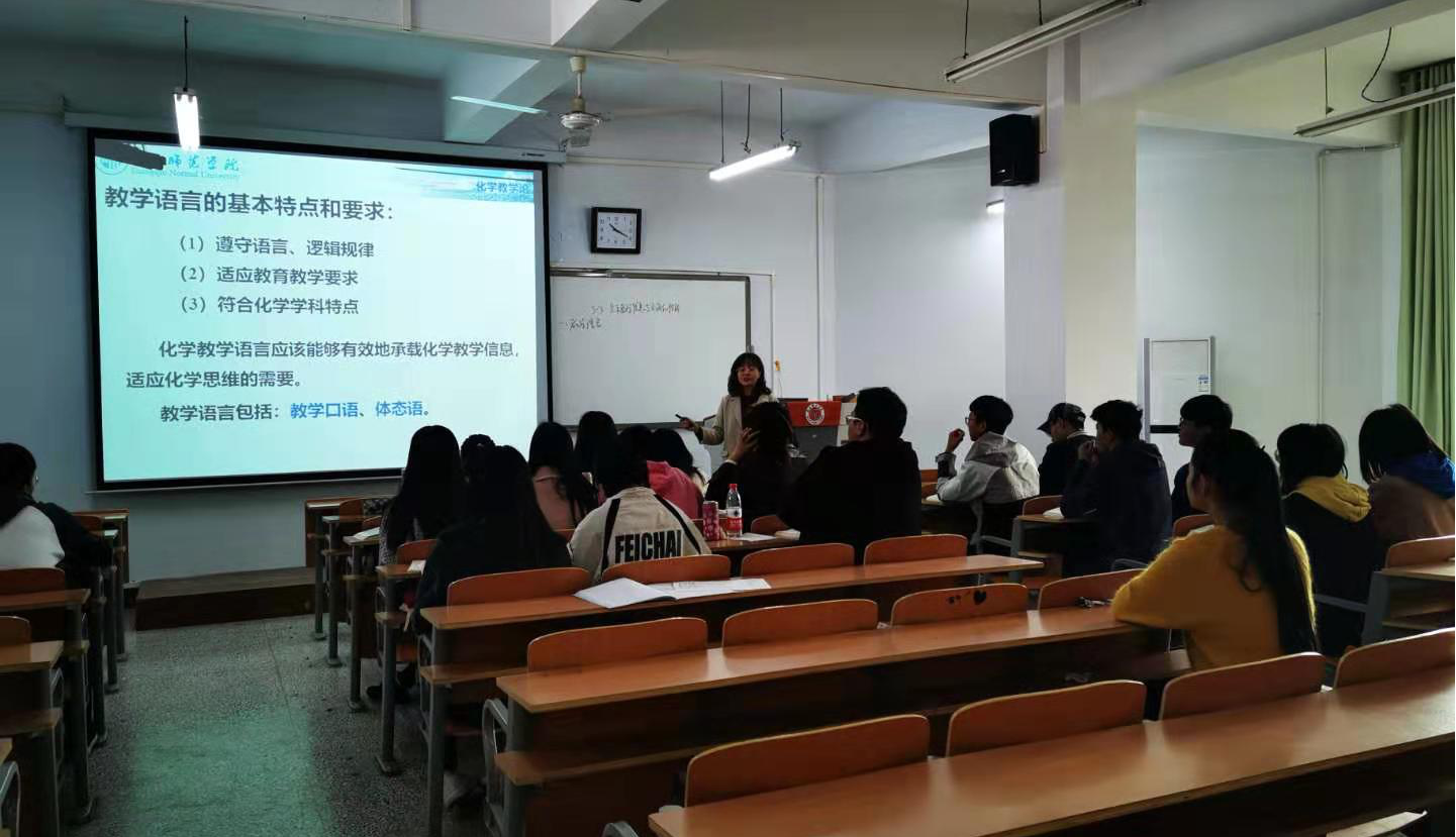 为了进一步加强我校青年教师的培训与交流,促进永利23411集团青年教师尽快适应学校转型发展和专业建设要求,提高教师的专业素质和教学能力,夯实教师驾驭课堂教学的基本功,本学期永利23411集团开展了青年教师公开课活动。2019年11月4日上午,永利23411集团青年教师张南在导师曹广秀教授指导下在睢阳校区1号教学楼407教室进行《化学教学论》公开课。化学系主任韦秀华副教授,青年教师导师曹广秀教授、张永亚博士以及化学系近三年新进青年教师等观摩了本次公开课。