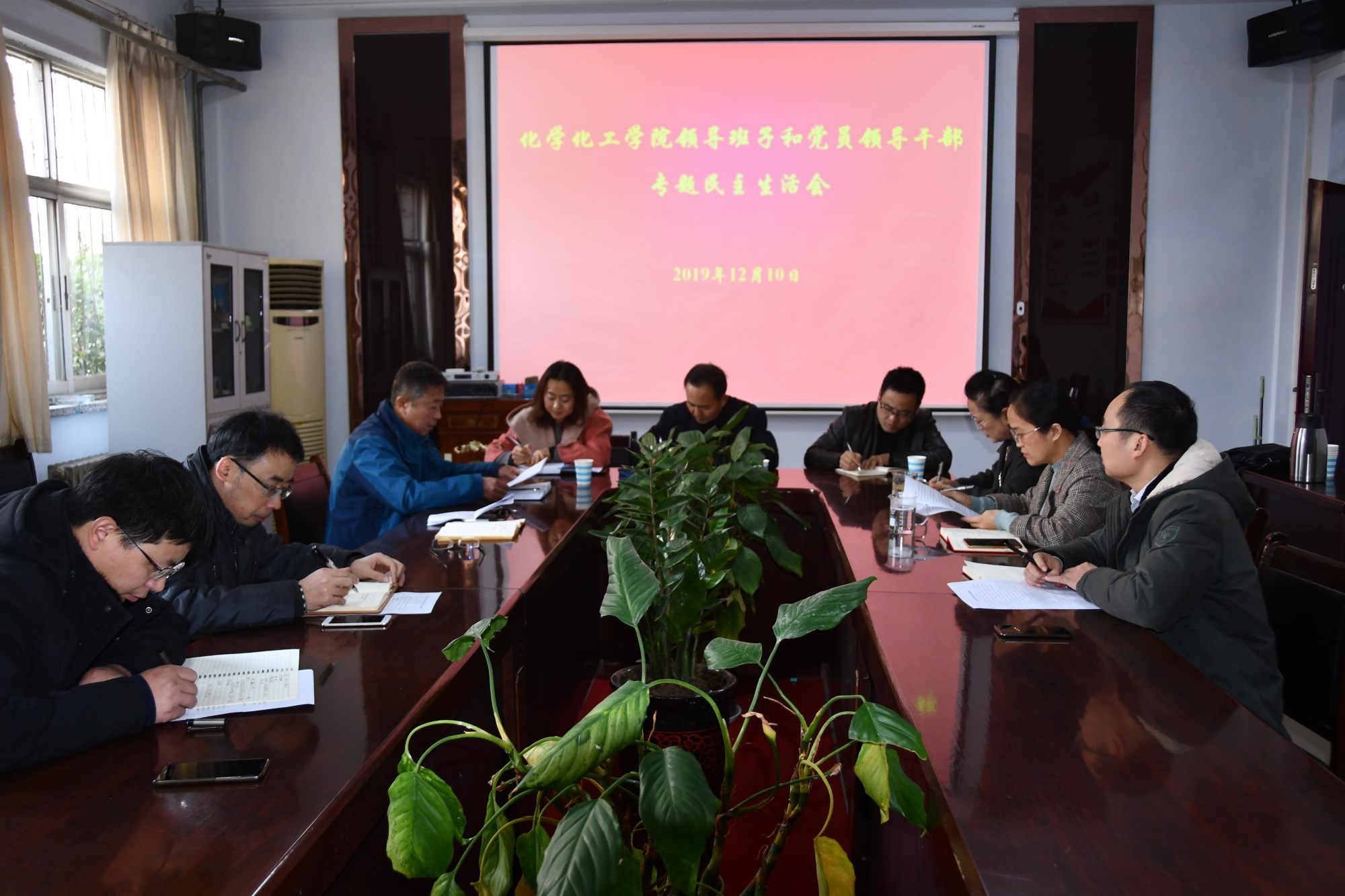 根据校党委《关于开好“不忘初心、牢记使命”主题教育专题民主生活会的通知要求》,经学校“不忘初心、牢记使命”主题教育第九指导组批准同意,12月10日下午,化学化工学院党总支在学院会议室召开了“不忘初心、牢记使命”主题教育专题民主生活会。学院领导班子成员和党员领导干部张银堂、刘澜涛同志参加会议,学校第一巡查工作组纪委副书记余俊强同志、党政办副主任贾丽同志、招生与就业处副处长姜慧霖同志列席指导。会议由党总支书记韩忠民主持。