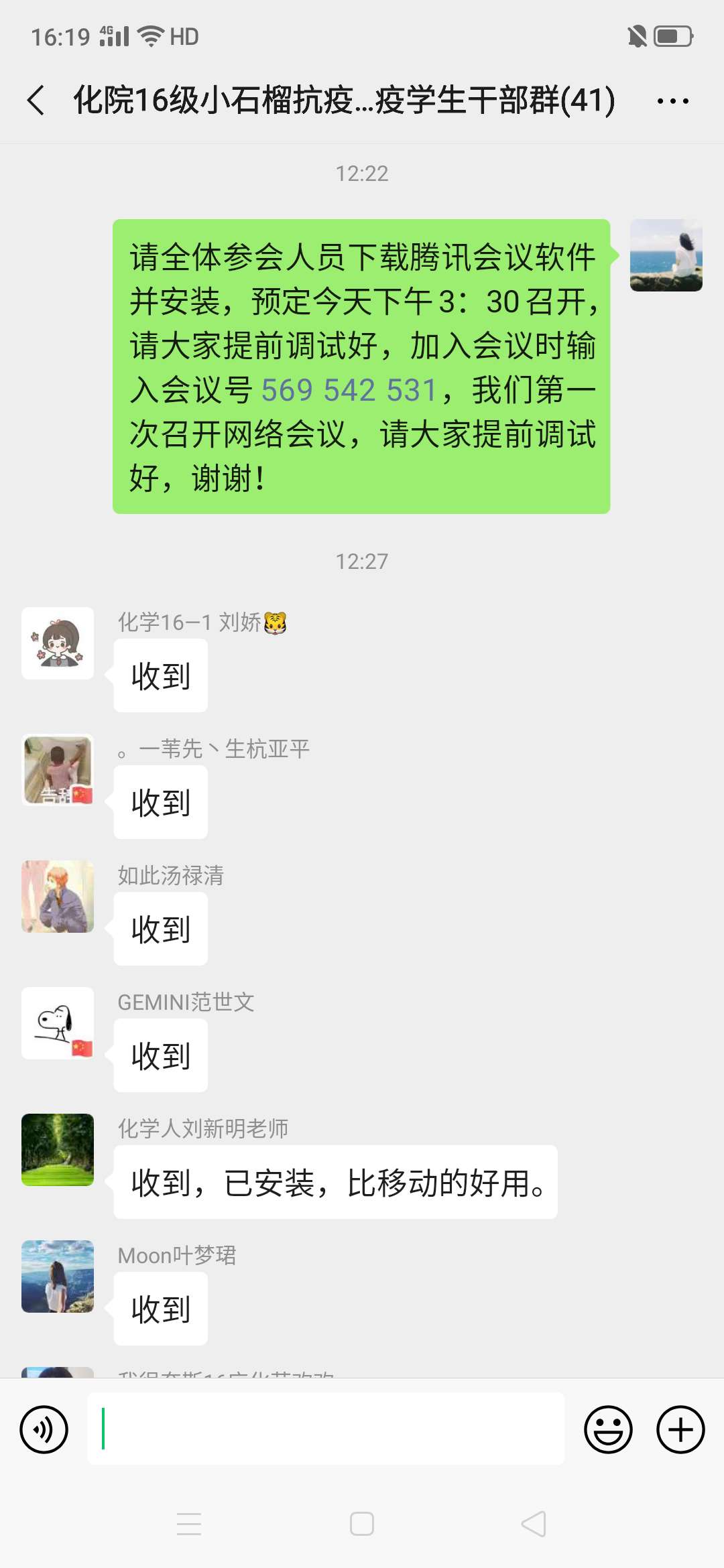 生命重于泰山、疫情就是命令、防控就是责任!疫情防控工作开展以来,化学化工学院高度重视,在2月12日召开辅导员、班主任网络视频会议的基础上,2月14日下午,再次组织召开全体学生干部网络视频会议,逐级再部署、再动员、再强调疫情防控的重要性。会议由各年级辅导员组织,全体班主任、学生干部共169人参会。