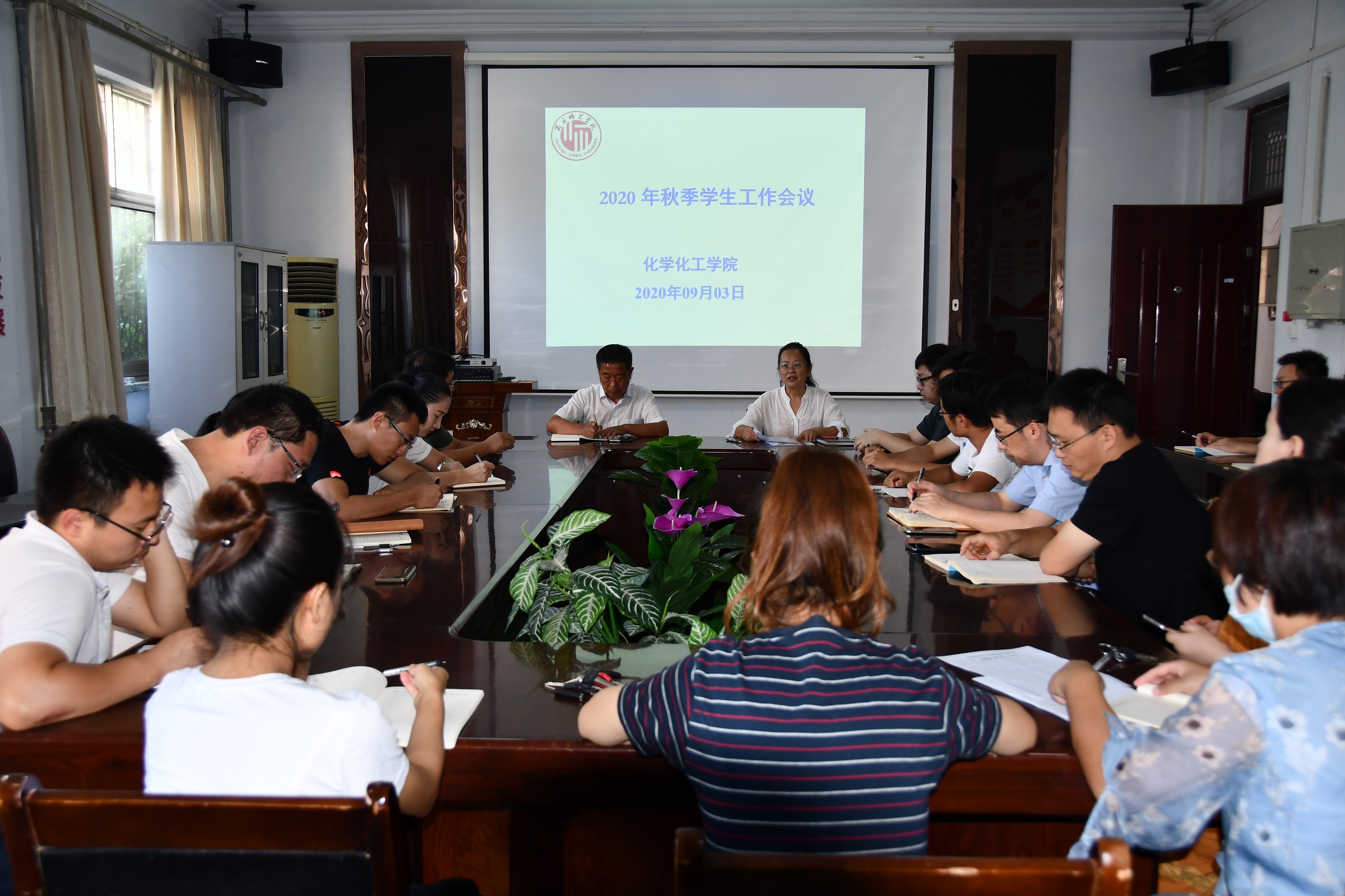 9月3日,化学化工学院组织召开2020年秋季学期学生工作会议,就在校生返校复学、校园疫情防控以及毕业生工作等进行安排部署。院党总支副书记刘瑛主持会议,院党总支书记韩忠民出席会议。全体辅导员和主班任参加会议。