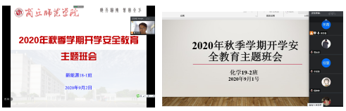 为了进一步做好2020年秋季学期学生返校复学各项工作,确保学生安全顺利返校复学,并引导学生适应常态化疫情防控背景下的校园学习和生活,8月30日-9月1日,化学化工学院各班在班主任和辅导员的组织下,分别在线召开了安全返校主题班会。