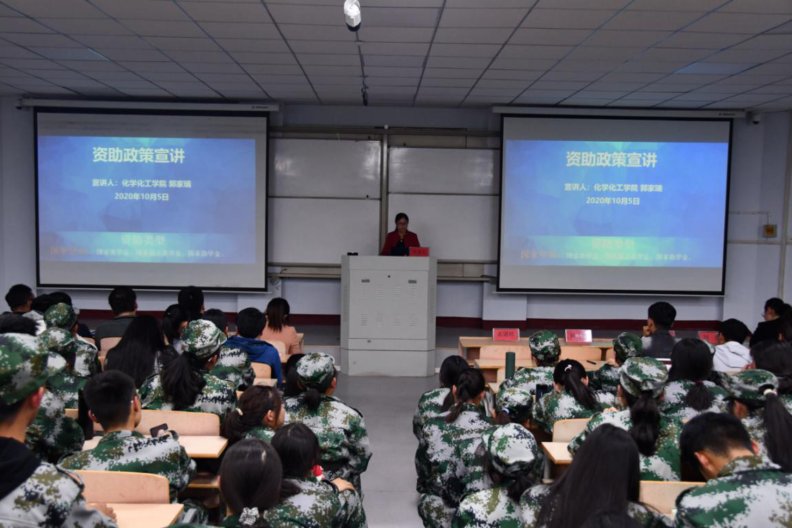 随后,教师代表李高伟结合自身经历分享了自己从本校学生最后成长为优秀博士生又回到母校工作的经历,为同学们树立了榜样。19、20级学生代表的发言,表达了他们对永利23411集团和化院的信任与成为更好自己的决心。郭家瑞进行资助政策宣讲,用精炼的语言从奖、助、贷、补、减五个方面讲解了资助工作有关程序、条件、要求、注意事项等,希望同学们对资助工作有更深入细致的了解。