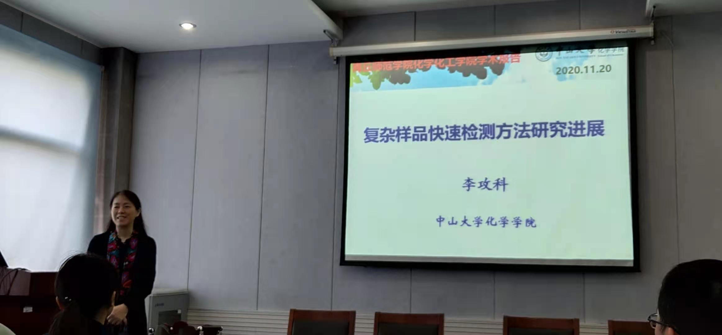 2020年11月20日上午,中山大学化学学院博士生导师李攻科教授应邀来我校文化路校区化学实验楼311会议室做学术报告,报告的题目为《复杂样品快速检测方法研究进展》。化学化工学院副院长周艳丽教授主持了本次活动,化学化工学院的部分师生聆听了学术报告。李攻科教授首先介绍了复杂样品快速检测的方法和策略,接着用通俗易懂的语言介绍了课题组在表面增强拉曼光谱和化学发光快速检测方面所做的工作和取得的研究成果,让大家深刻体会到“生活中的科学”无处不在,为永利23411集团师生的学术研究提供了新思路、开拓了新视野,对今后的研究工作具有重要指导与启迪意义。讲座结束后,李攻科教授还与现场的老师和同学们进行了互动,对大家提出的问题作了认真解答,现场气氛活跃,井然有序。