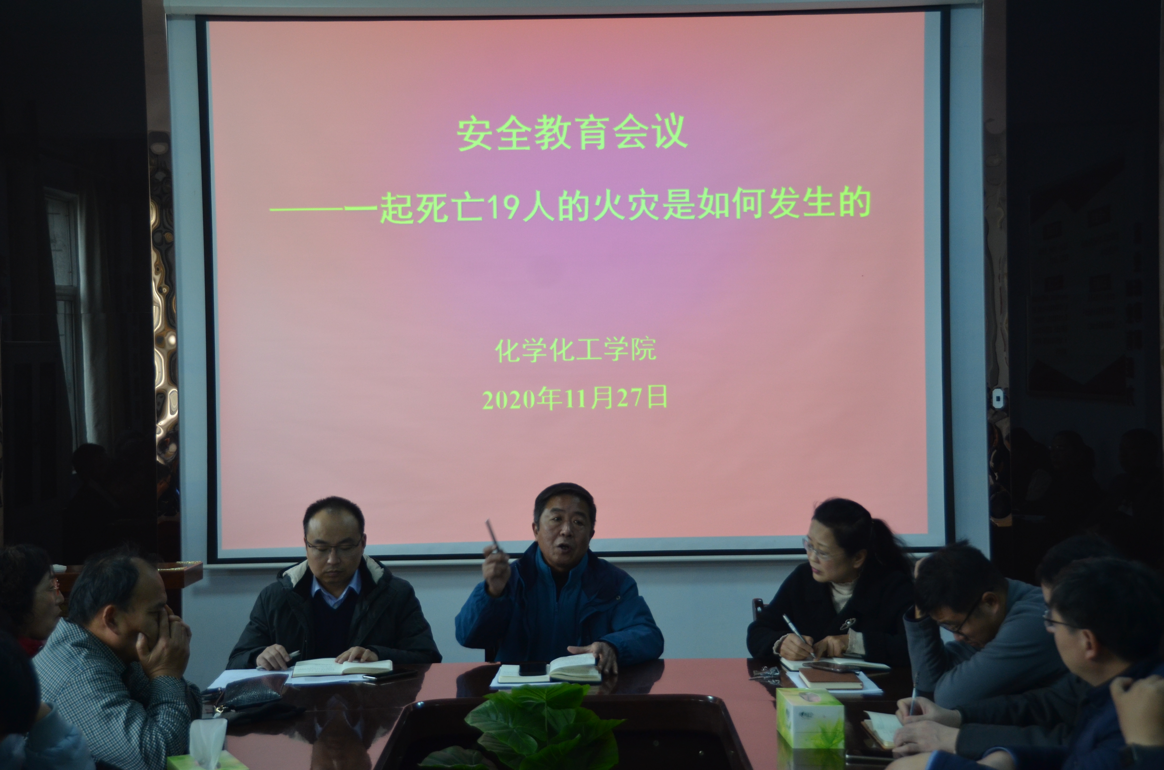 为切实增强师生安全防范的意识,提高自我保护能力,保障自身安全。2020年11月27日,化学化工学院在睢阳校区7号楼会议室召开了安全教育会。会议由党总支书记韩忠民主持,全体教职工参加。
