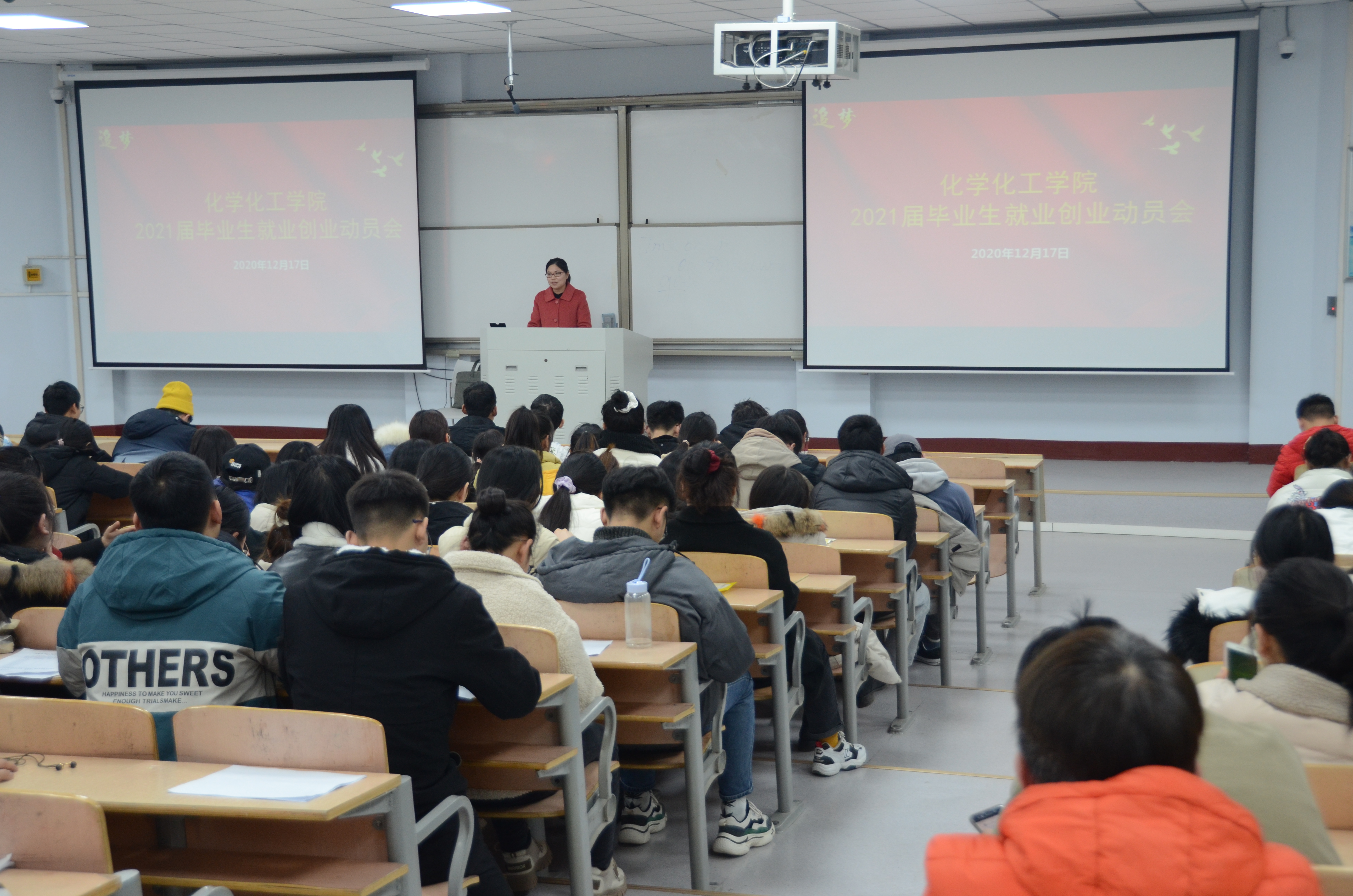 12月17日,化学化工学院在睢阳校区1号教学楼207室召开了2021届毕业生就业创业动员会,毕业班辅导员、班主任及全体毕业生参加。会议由年级辅导员郭家瑞主持。