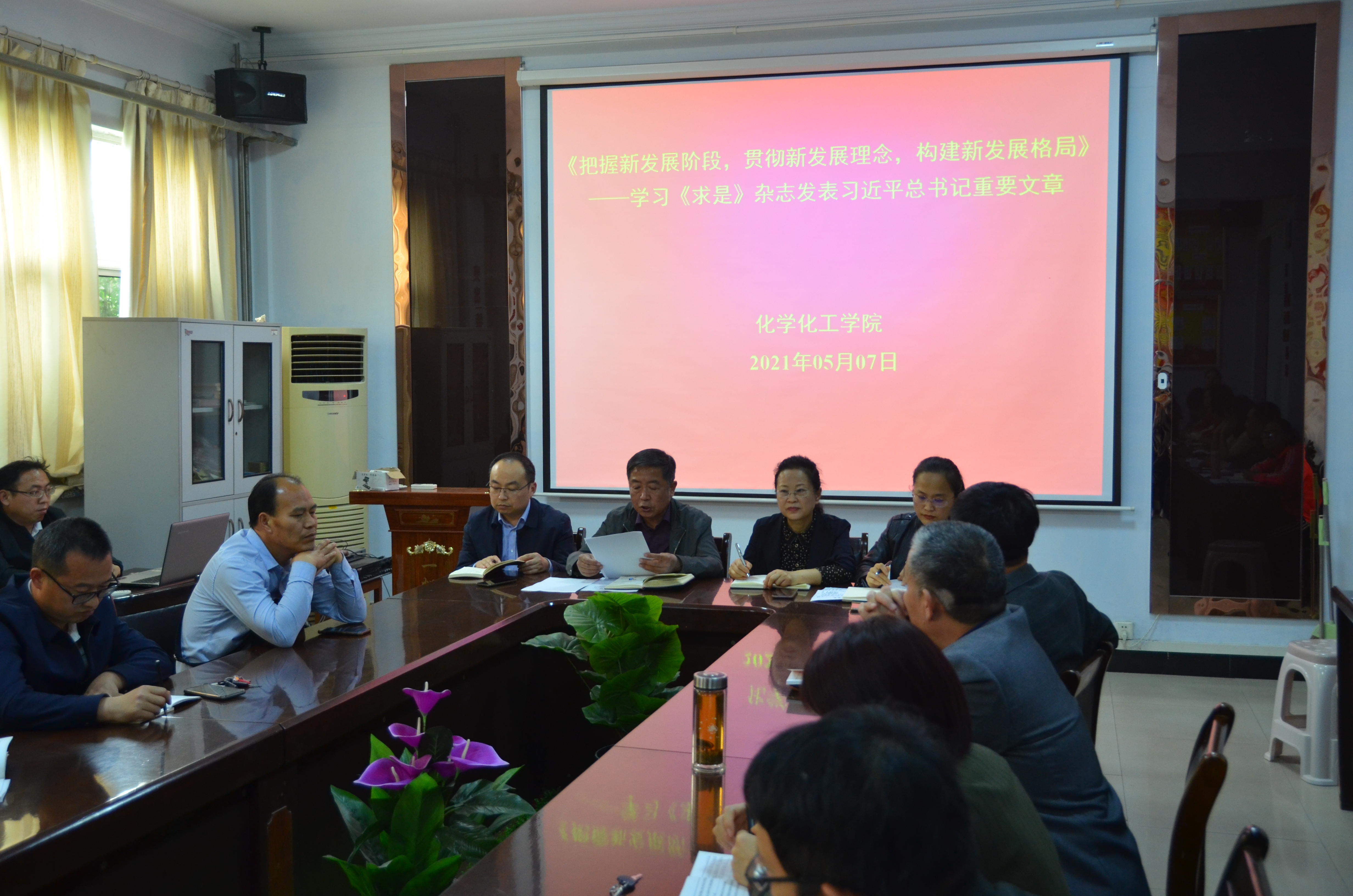 5月7日下午,按照校党委宣传部要求,化学化工学院于睢阳校区7号楼会议室组织召开第十周政治理论学习,会议由党总支书记韩忠民主持,化学化工学院全体教职工参加。