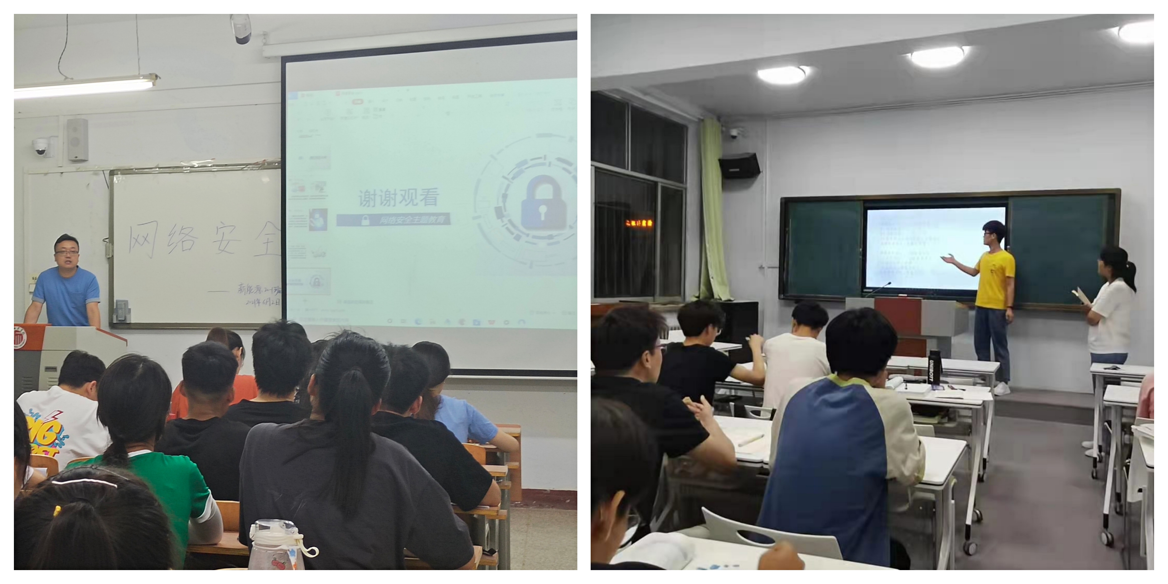 材料20-1班以"共建网络安全,共享网络文明"为主题,班主任李盼为大家讲解了网络安全相关知识,并提出以后要加强网络安全知识宣传教育,增强班级全体成员网络安全意识。化学20–1班主任董辉强调要文明上网,绿色上网,在网络上注意自己的一言一行,提高自我防范意识,远离网络陷阱。化学20-4班主任王鑫围绕“网络的积极作用、消极作用和我们身边常见的网络犯罪行为”三方面对同学们进行教育引导,并就“网络带给我们的利与弊”这一话题组织学生进行讨论。新能源20-1班以“维护网络安全,共建平安校园”为主题,班主任刘猛围绕“网络的利与弊”、“网络诈骗”、“网络造谣”以及“我们该怎么做”四个部分进行讲解,引导学生正确认识网络这把“双刃剑”,拒绝各种网络的不良诱惑。