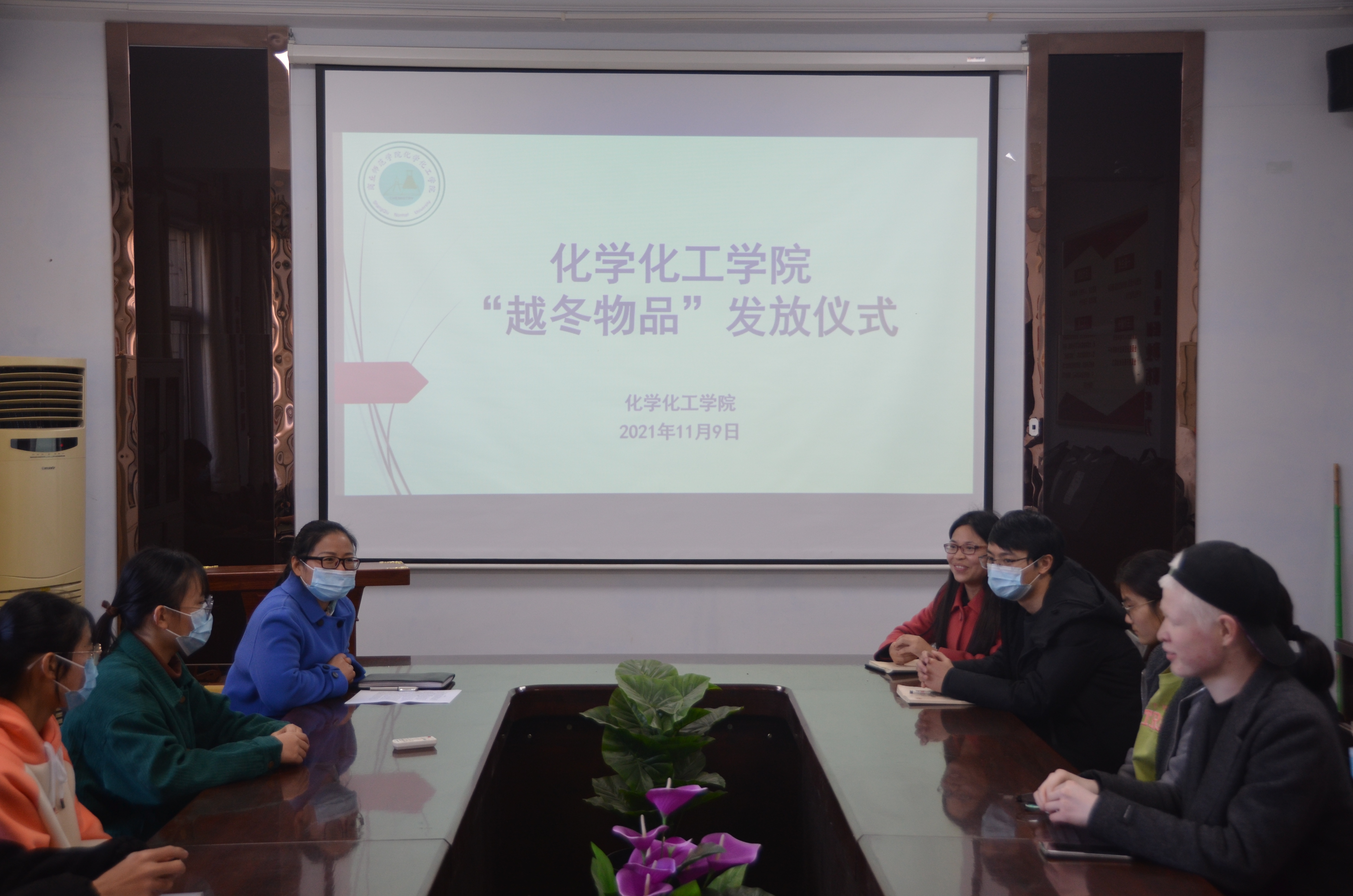 为了确保家庭经济困难学生温暖过冬。11月09日中午,化学化工学院于睢阳校区7号楼会议室组织开展“越冬物品发放”仪式。仪式由党委副书记张颜梅、团总支副书记郭家瑞,学工办副主任史展出席,全体21级受助同学参加。