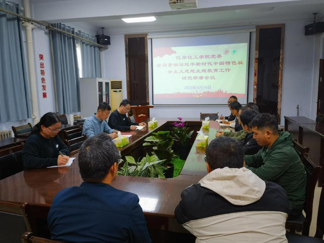 根据学校党委《关于在全校党员中深入开展学习贯彻习近平新时代中国特色社会主义思想主题教育的实施方案》精神,4月14日上午,化学化工学院党委在学院会议室召开“学习贯彻习近平新时代中国特色社会主义思想主题教育”工作研究部署会议。学院班子成员、科级以上干部出席会议,会议由院党委书记李海涛主持。