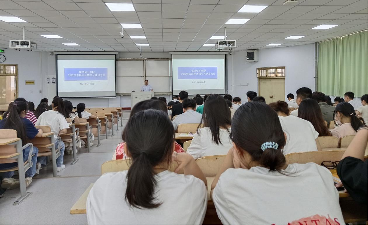 6月12日,化学化工学院2022级本科生认知实习动员大会在睢阳校区1号教学楼106教室举行。副院长王涛、各系系主任、2022级各班班主任及全体学生参加。大会由王涛主持。