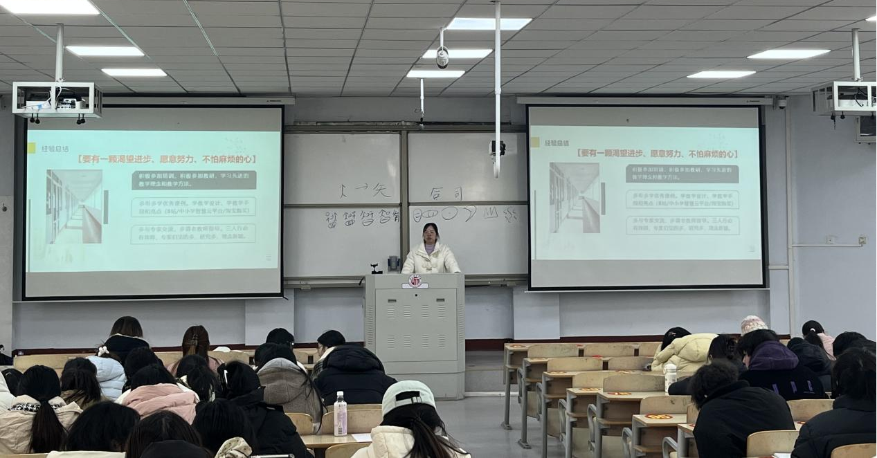 为稳步推进“人工智能+”中学化学师范生成长工作坊的系列主题活动,化学化工学院于12月26日在睢阳校区1号教学楼106教室成功举办微型课集体培训活动。此次活动邀请了商丘市高级中学的张伶俐老师担任主讲嘉宾,2023级全体师范生参加,活动由校内坊主老师祝艳芳主持。