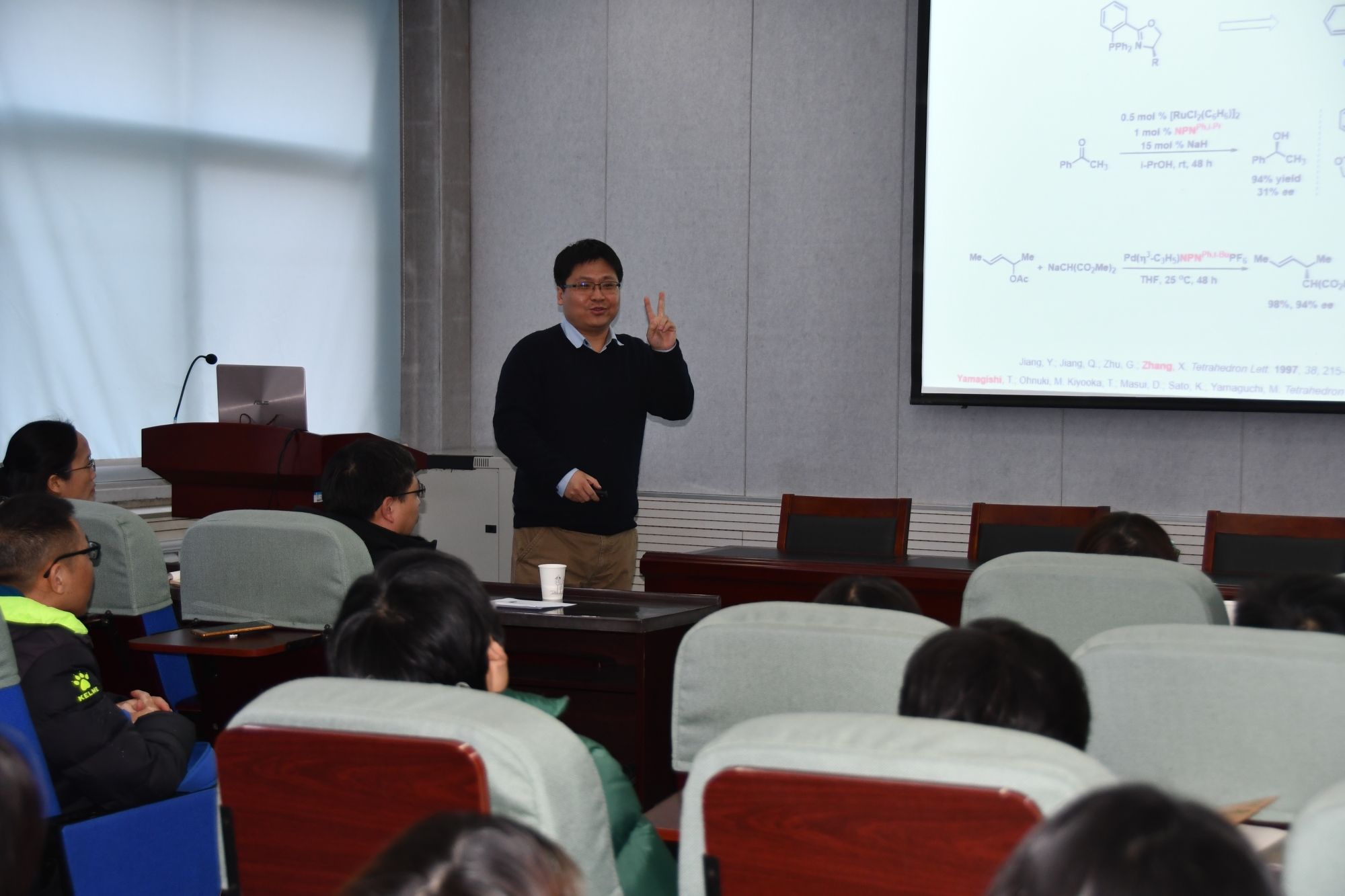应化学化工学院邀请,12月6日上海交通大学李长坤研究员在文化路校区化学实验楼三楼学术报告厅作了题为《基于手性NPN配体的不对称烯丙基化反应》的学术报告,报告会由药物绿色合成河南省工程实验室主任刘澜涛教授主持。化学化工学院部分师生聆听了报告。