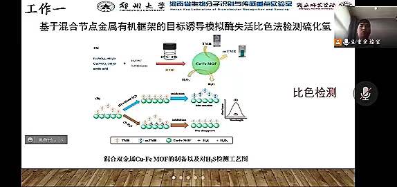 2022年4月23日上午,河南省生物分子识别与传感重点实验室召开工作组会。疫情防控期间,本次会议采用线上和线下相结合的方式进行。会议的参与人员有:副校长徐茂田教授、化学化工学院院长张银堂,以及生重室全体教师和研究生,会议由重点实验室主任周艳丽教授主持。