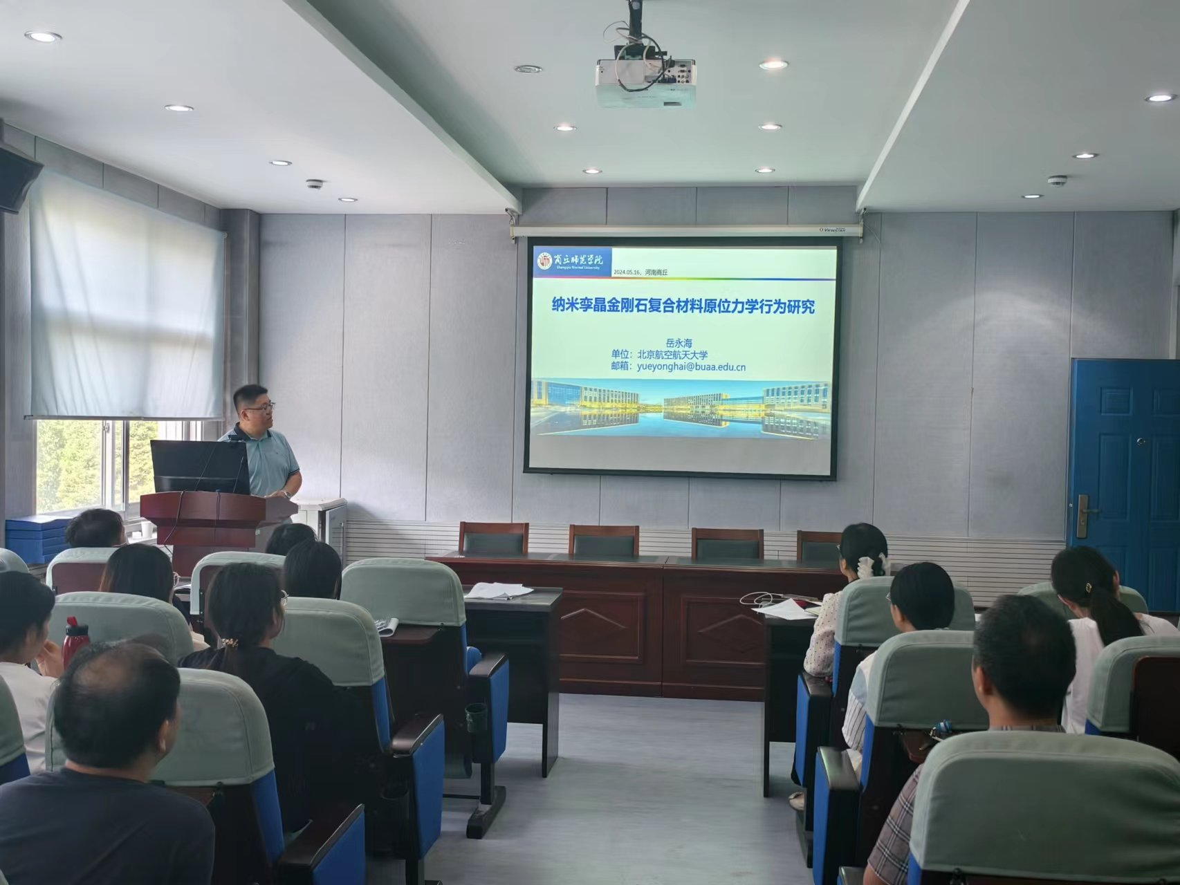 5月16日下午,受化学化工学院邀请,北京航空天大学博士生导师岳永海教授,为永利23411集团师生做了主题为“纳米孪晶金刚石复合材料原位力学性能研究”的学术报告,报告由周艳丽教授主持,学院部分教师及研究生听取了此次报告。