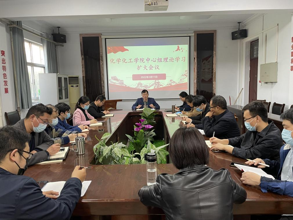 3月11日下午,化学化工学院党委在睢阳校区7号楼会议室召开中心组理论学习扩大会议,学院班子成员、科研平台负责人、科级干部等参加会议。会议由院党委书记李海涛主持。