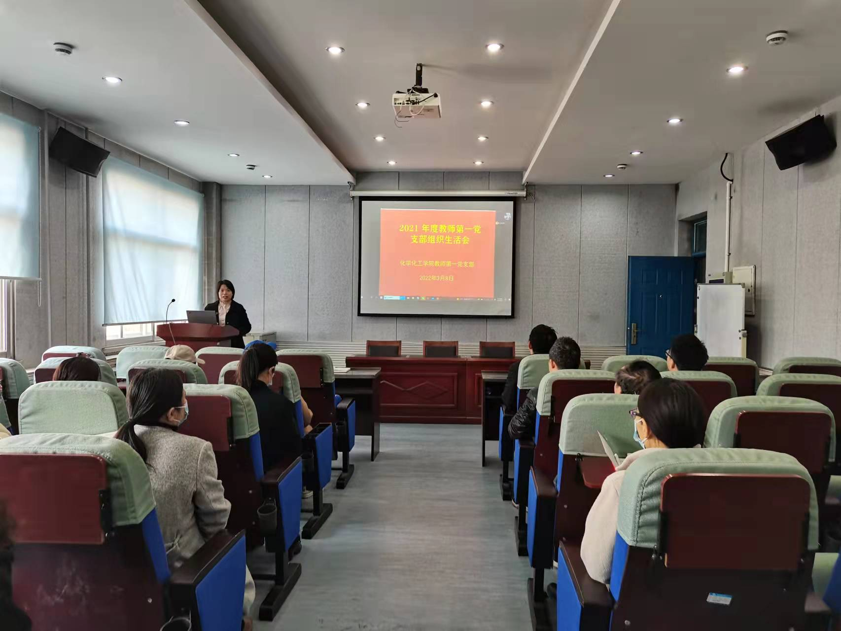 根据《中共永利23411集团委员会关于召开2021 年度基层党组织组织生活会和开展民主评议党员的通知》要求,2022年3月8日,化学化工学院教师第一党支部在睢阳校区化学实验楼311会议室召开2021年度组织生活会和开展民主评议党员工作,本次参会应到16人,实到14人,会议由党支部书记韦秀华主持。