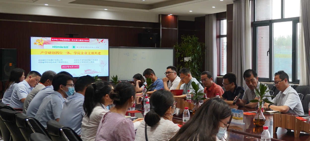 为加强院企合作,促进产学研创融合,充分发挥企业和高校的优势,推进学院人才培养质量和服务地方企业水平提升,6月13日化学化工学院教师第三党支部赴河南瀚斯作物保护有限公司,与公司党支部共同开展“产学研创四位一体,学院企业支部共建”主题党日活动。党委书记李海涛、副院长王涛、教师第三党支部书记张明亮,河南瀚斯作物保护有限公司生产基地运营总监梁中普、支部书记陈栋梁以及校企双方所属支部党员参与本次活动。