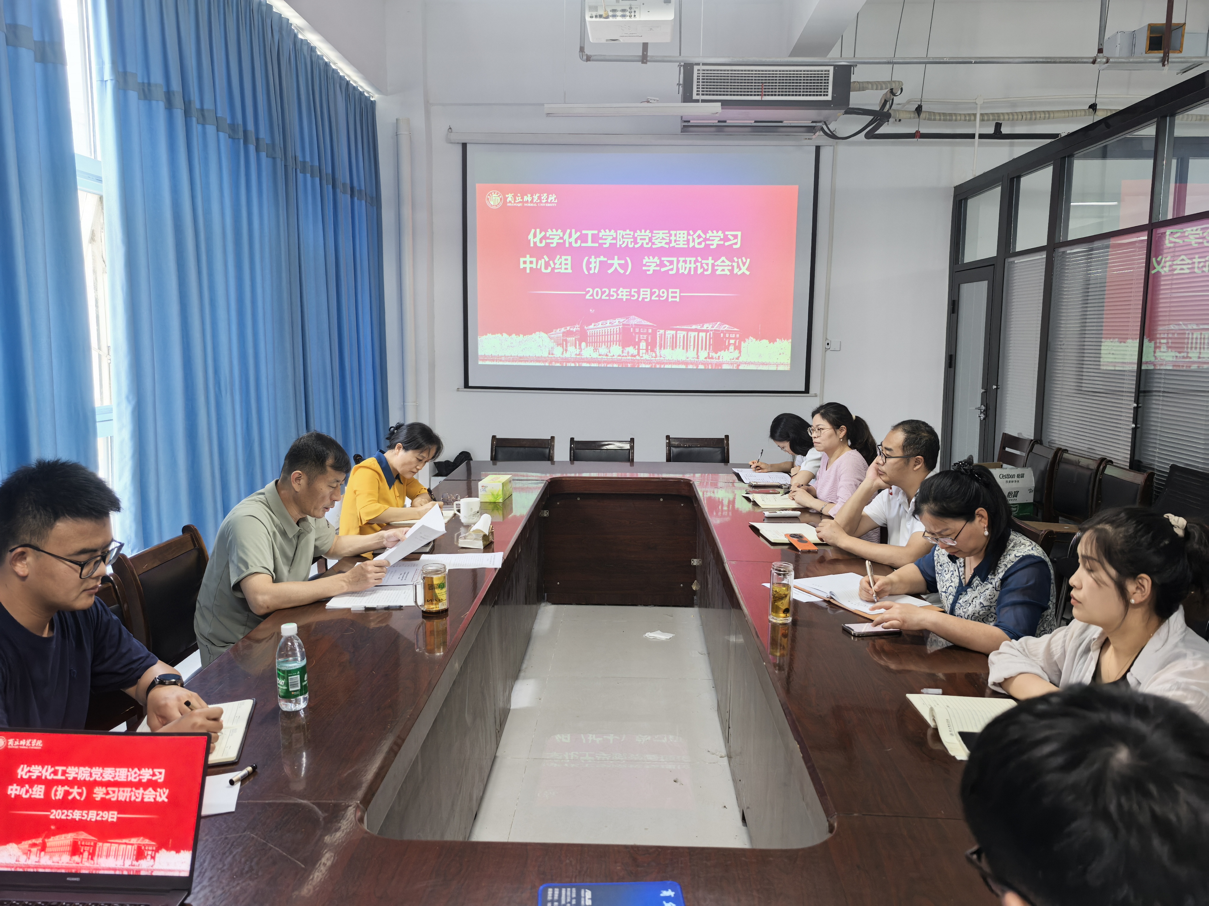 5月29日,化学化工学院在工科实训楼B308会议室召开党委理论学习中心组(扩大)集中学习研讨会议。学院领导班子、全体辅导员、党政办公室和教学办公室负责人参加会议。会议由学院党委书记李海涛主持。