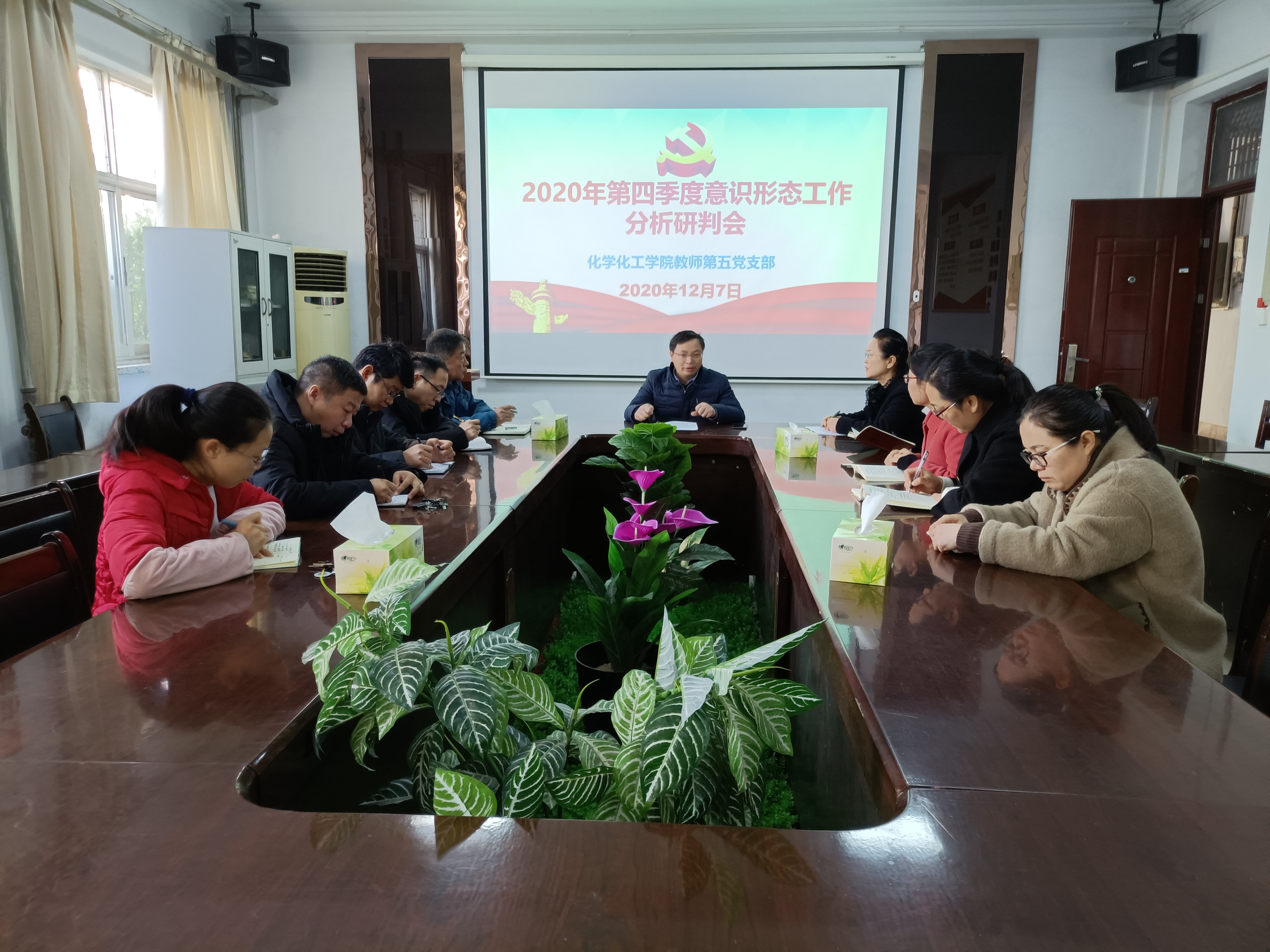 12月7日上午,化学化工学院教师第五党支部在学院议室召开了2020年第四季度意识形态工作研判会。支部书记刘澜涛主持,支部全体党员参加了会议。