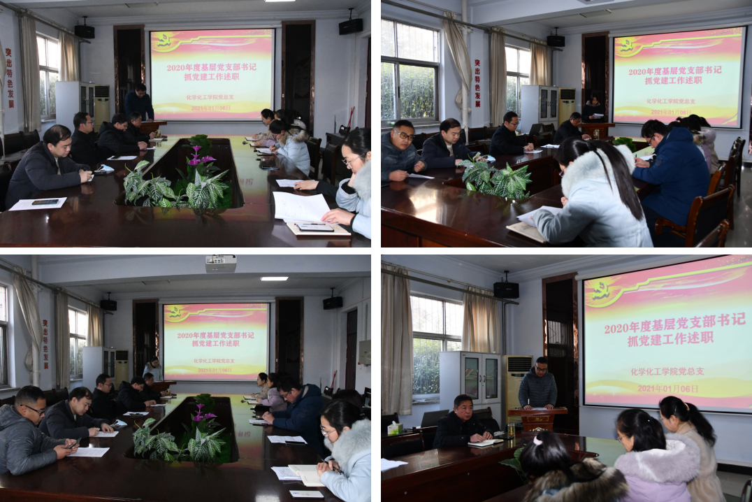 1月6日上午,化学化工学院2020年度基层党支部书记抓党建述职评议会在睢阳校区7号楼学院会议室举行。院党总支书记韩忠民,党总副书记刘瑛、副院长孟团结、周艳丽出席会议,各党支部书记和党员代表参加本次会议,会议由韩忠民主持。