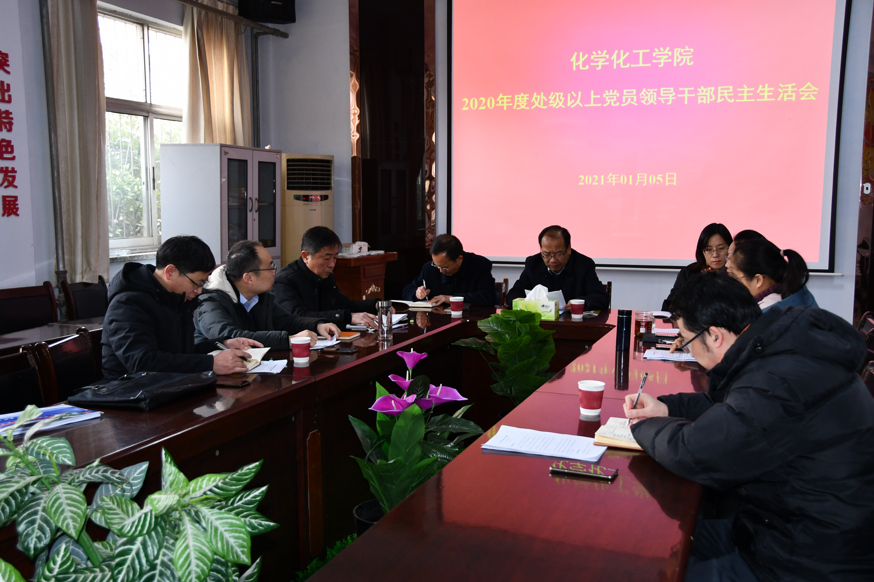 为深入学习贯彻习近平新时代中国特色社会主义思想、党的十九届五中全会精神,1月5日下午,化学化工学院2020年度处级以上党员领导干部民主生活会在睢阳校区7号楼院会议室召开。学校第八督导组组长副校长郭文佳、纪委副书记余俊强、党委组织部教育科科长王凤娟一行莅临会议,学院党总支书记韩忠民、党总支副书记刘瑛、副院长孟团结、周艳丽、河南省生物分子识别与传感重点实验室执行主任张银堂、药物绿色合成河南省工程实验室主任刘澜涛参加了会议。会议由韩忠民书记主持。