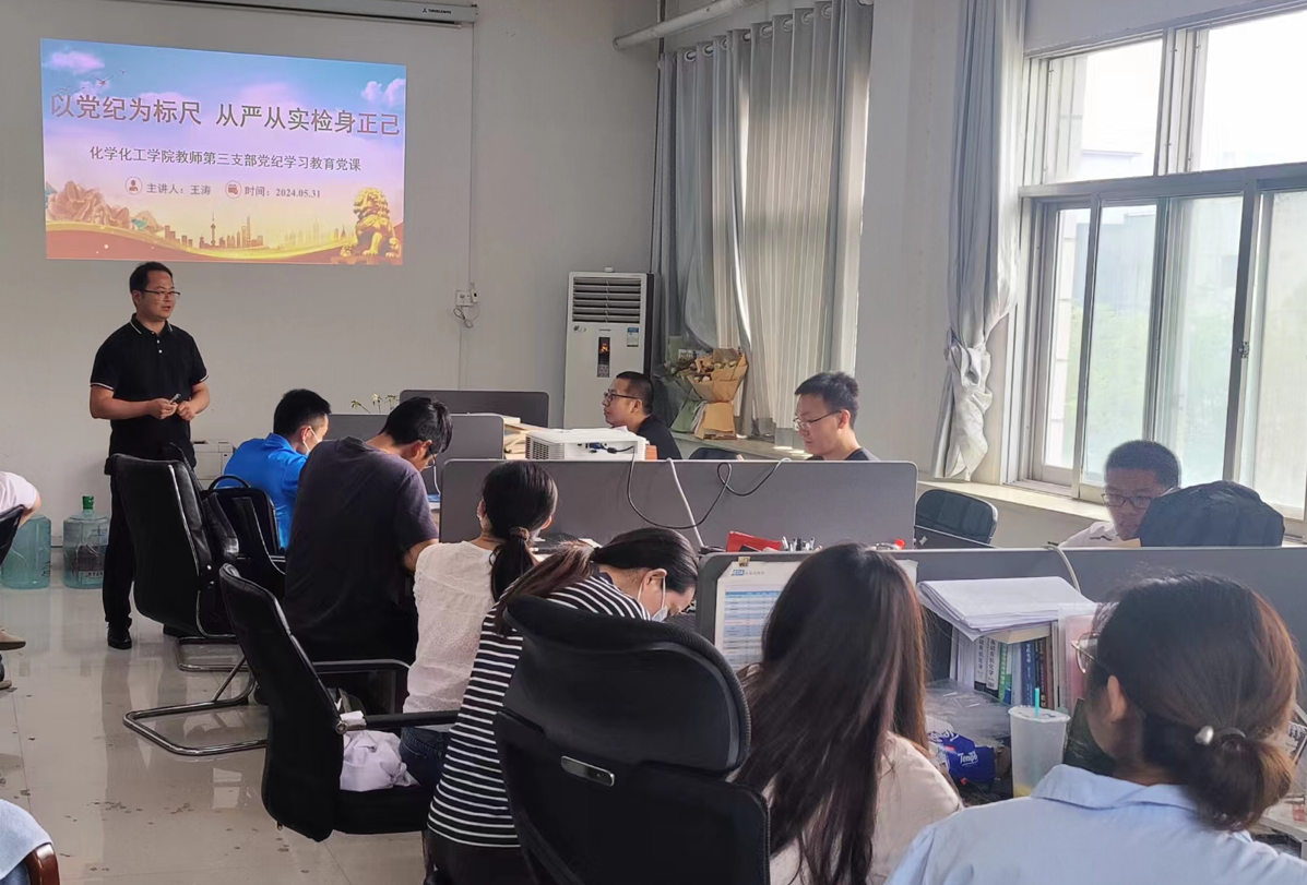 近期,化学化工学院各党支部开展党纪学习教育集中学习和专题研讨活动,进一步增强党员干部纪律意识和规矩意识,推动党纪学习教育走深走实。