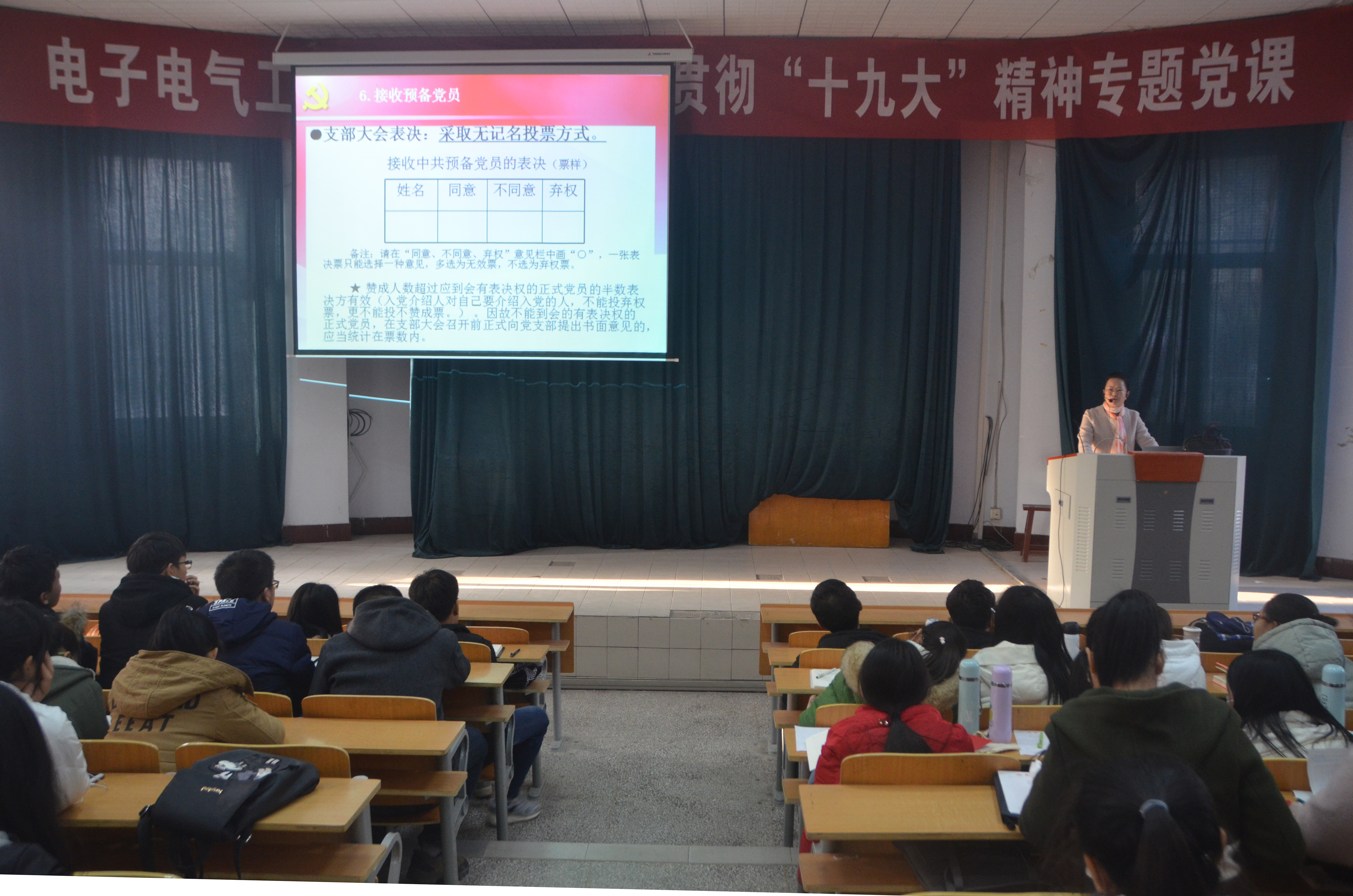 此次讲座主要针对目前学生对入党程序及有关方面的认识存在不足而举办。讲座主要介绍以下三面的内容:一是申请入党的条件和党章对党员的基本要求,特别强调指出申请入党人必须年满十八周岁,自愿申请入党,并指出党员要全心全意为人民服务,不得谋求私利及特权;二是发展党员工作的方针、原则和程序;三是党员发展文本资料书写要规范。