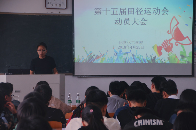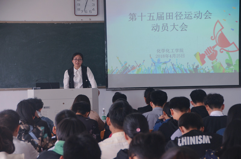 4月25日中午,化学化工学院在文化路校区1#405举行了“第十五届田径运动会动员大会”。化学化工学院党总支副书记刘瑛、团总支书记李龙梅出席会议,团总支、学生会部分成员、青协部分成员、参加运动会的成员及服务人员参与会议,会议由李龙梅主持。