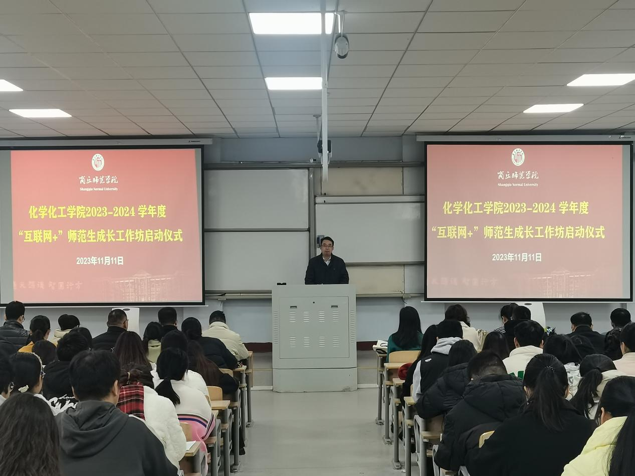 为进一步提升师范生职业素养和专业技能,11月11日,化学化工学院在睢阳校区1号教学楼107教室举行了2023-2024学年度中学化学“互联网+”师范生成长工作坊启动仪式。来自商丘市基础教育研究中心、商丘市第一高级中学、商丘市回民中学、商丘市第一中学、商丘市第六中学、商丘市实验中学的20名中学化学一线名师,院长张银堂、副院长王涛,化学系主任董辉,教师代表及2021级全体师范生参加了会议。