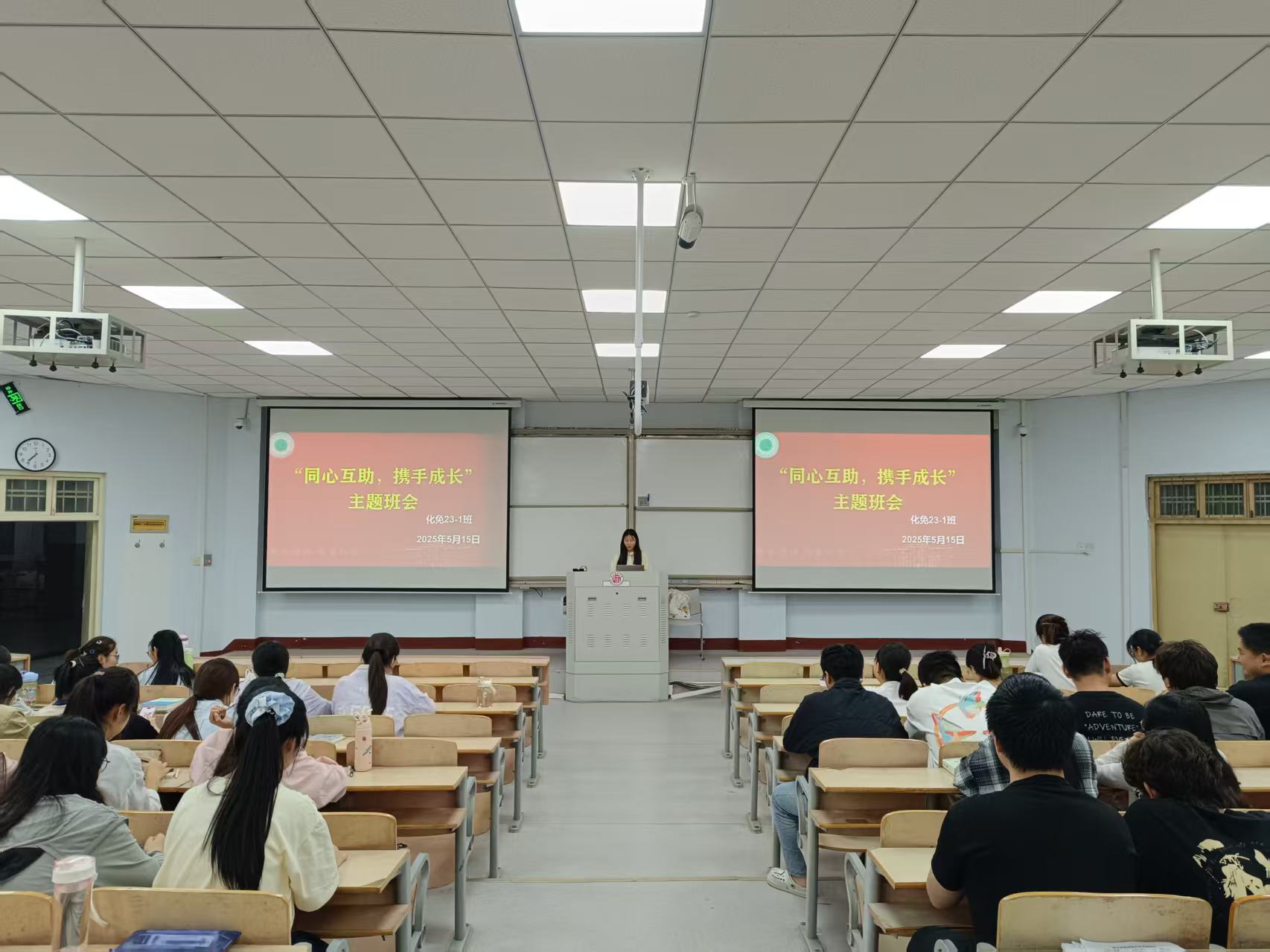 为加强同学之间的交流,提升班级的凝聚力,5月14日,化学化工学院“与光同行”心理工作室组织召开“同行互助,携手成长”心理主题班会。