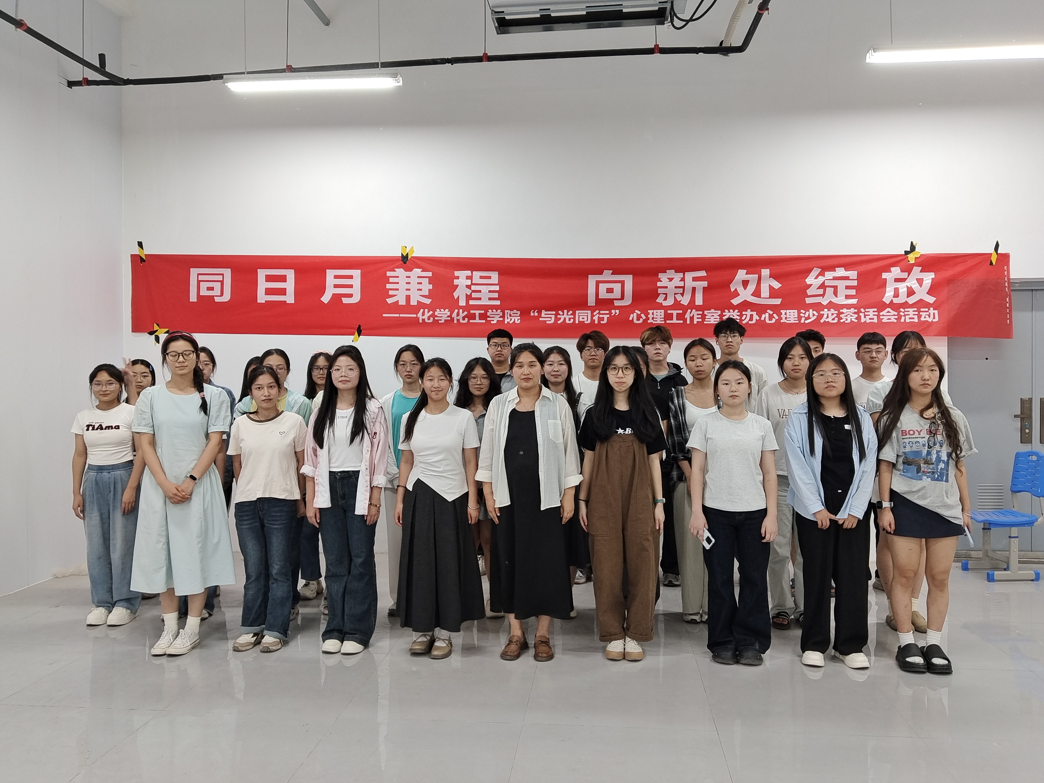 为促进学生心理健康发展,搭建沟通交流平台,6月12日,化学化工学院“与光同行”心理工作室于工科实训楼B210举办“同日月兼程,向新处绽放”心理沙龙茶话会活动。