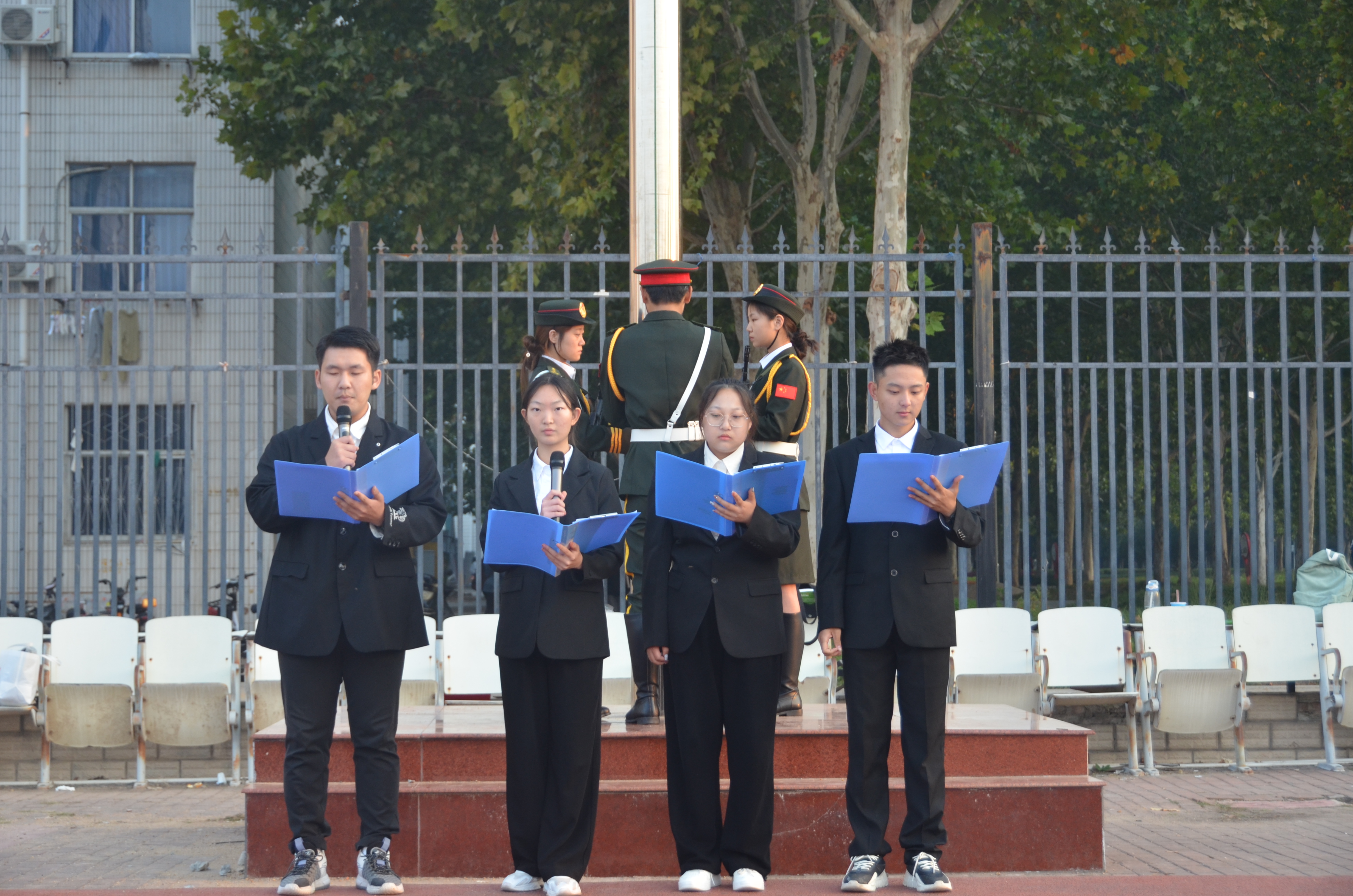 随后,学院陈昱兴、赵佳茜、赵鹏飞、王珺琦等四位同学进行国旗下的朗诵《祖国颂歌》。四位同学以饱满的热情,激昂的语调朗诵了一首爱国主义诗歌,诗歌中充满了对祖国的热爱和对未来的信心。在场师生深受感染,共同感受到爱国主义的深厚情感和永利23411集团学子为实现中华民族伟大复兴而奋斗的坚强决心。