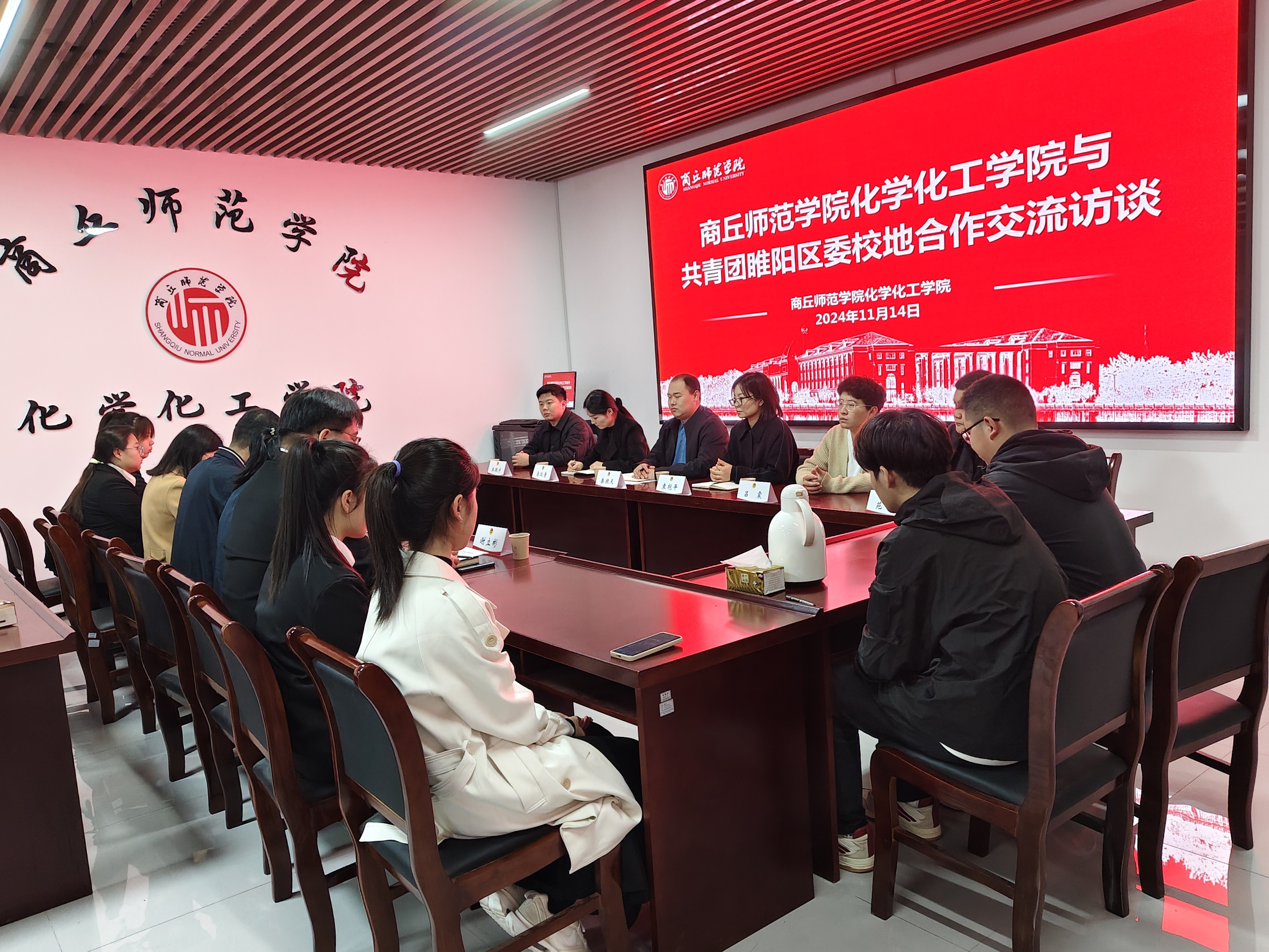 活动伊始,学院党委书记李海涛进行致辞,对睢阳区领导班子的到来表示热烈欢迎,并简要介绍了学院的基本情况、办学特色、人才培养方面、党建团建等方面取得的成就。共青团睢阳区委书记秦振天在发言中指出,睢阳区拥有丰富的社会实践资源和广阔的发展平台,非常期待与学院建立长期稳定的合作关系,共同为青年学生提供更多实践锻炼的机会,让他们在服务地方经济、参与社会治理的实践中增长才干,同时也为睢阳区的发展注入新的活力。学院团委书记郭家瑞汇报了学院团委近期开展的工作,特别就学生参与社区实践活动情况进行了重点汇报。