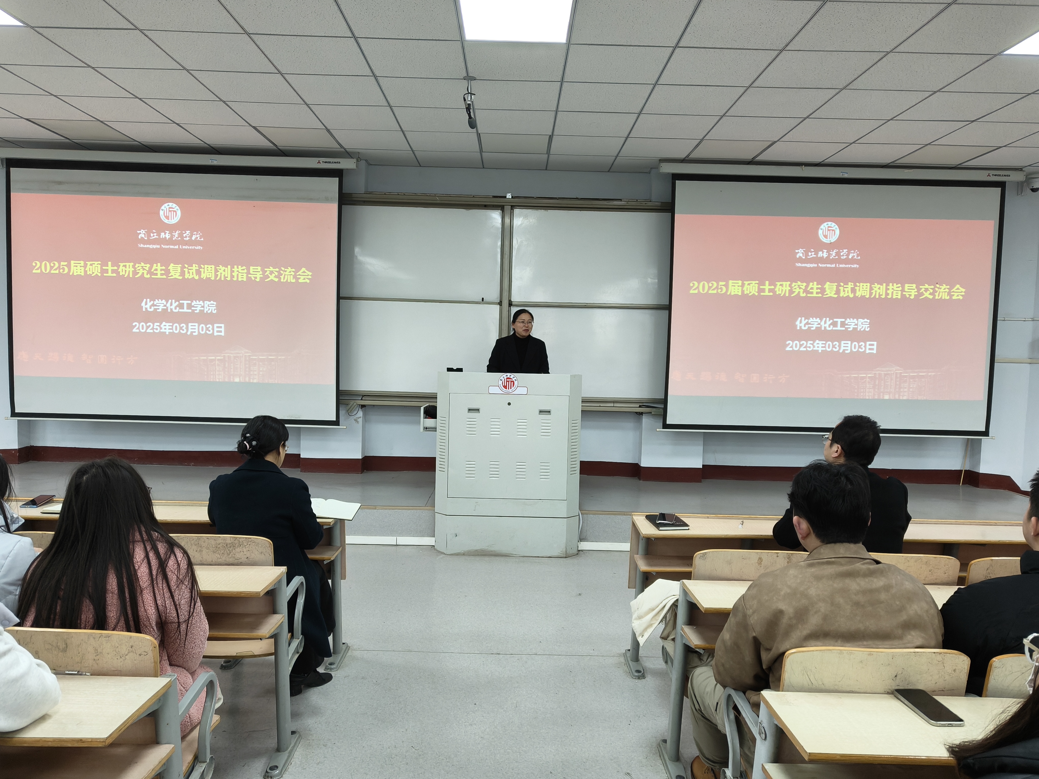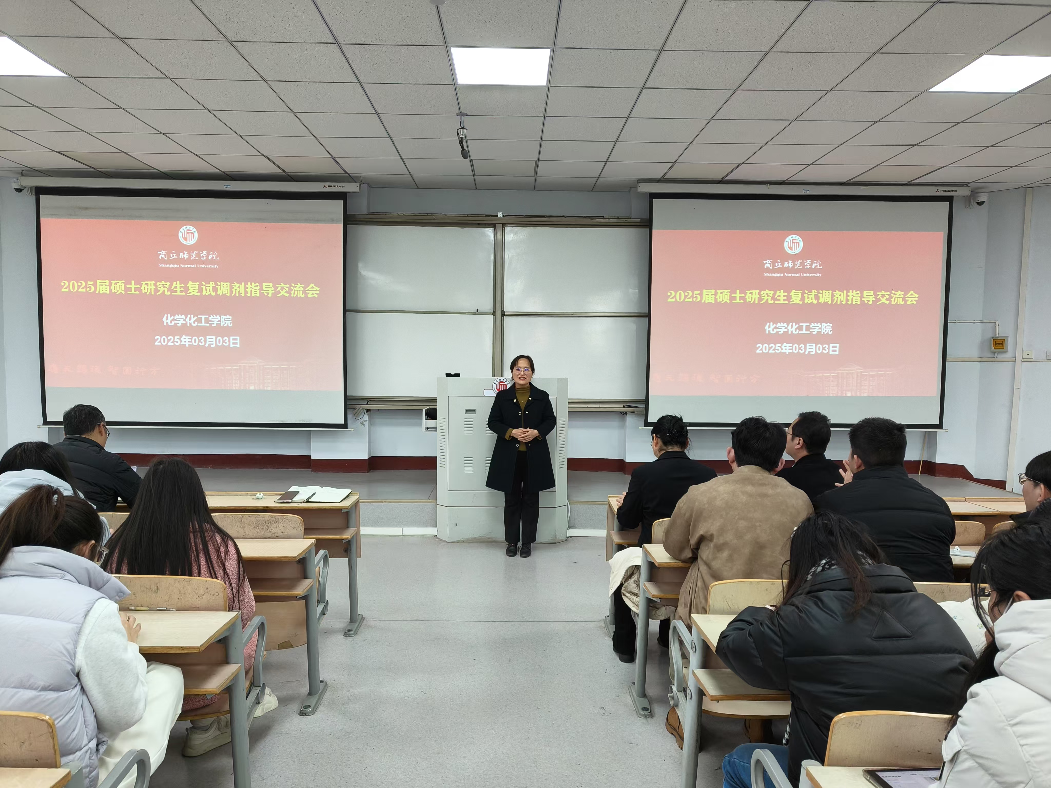 为全力做好学生考研复试、调剂等各项服务保障工作,帮助学生更好地了解复试、调剂要点,提高考研录取率,化学化工学院于3月3日在睢阳校区1号教学楼307教室举办了2025年硕士研究生复试调剂指导交流会。学院领导班子成员、科研平台负责人、毕业班辅导员班主任及考研上线全体学生参加,会议由张颜梅副书记主持。