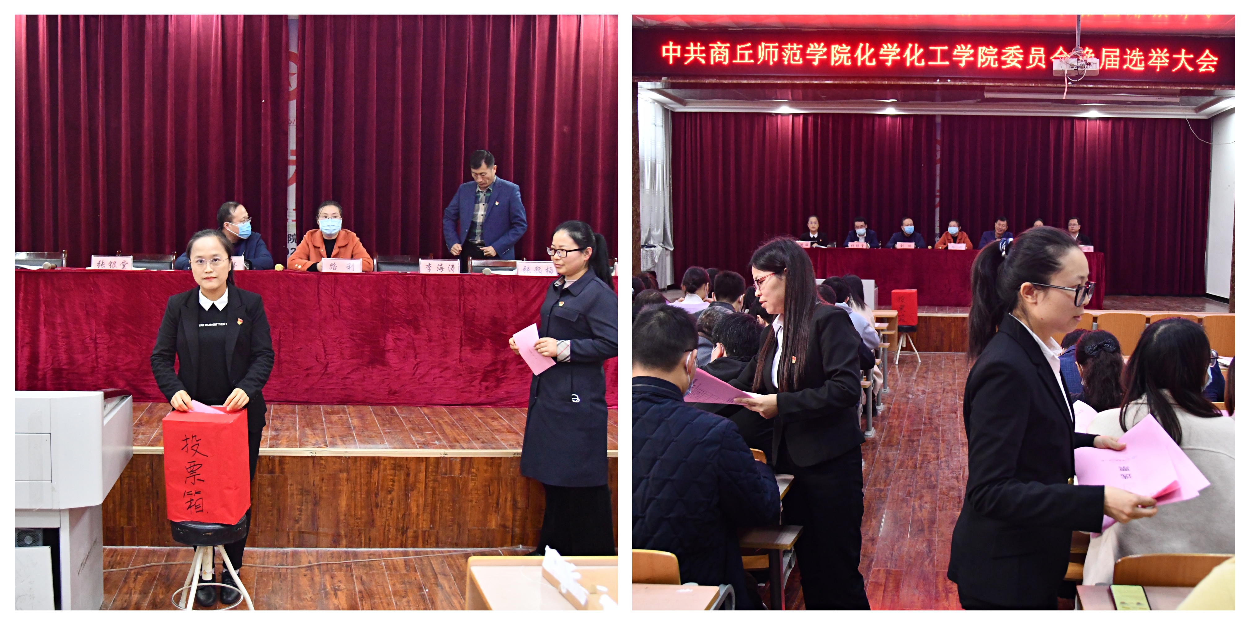 大会严格按照《化学化工学院党委换届选举办法》规定,经无记名投票,差额选举产生了由李海涛、张银堂、张颜梅、王涛等四名同志组成的新一届党委委员会。随后,新一届党委委员召开了第一次全体会议,选举产生党委书记、副书记,并确定委员分工。